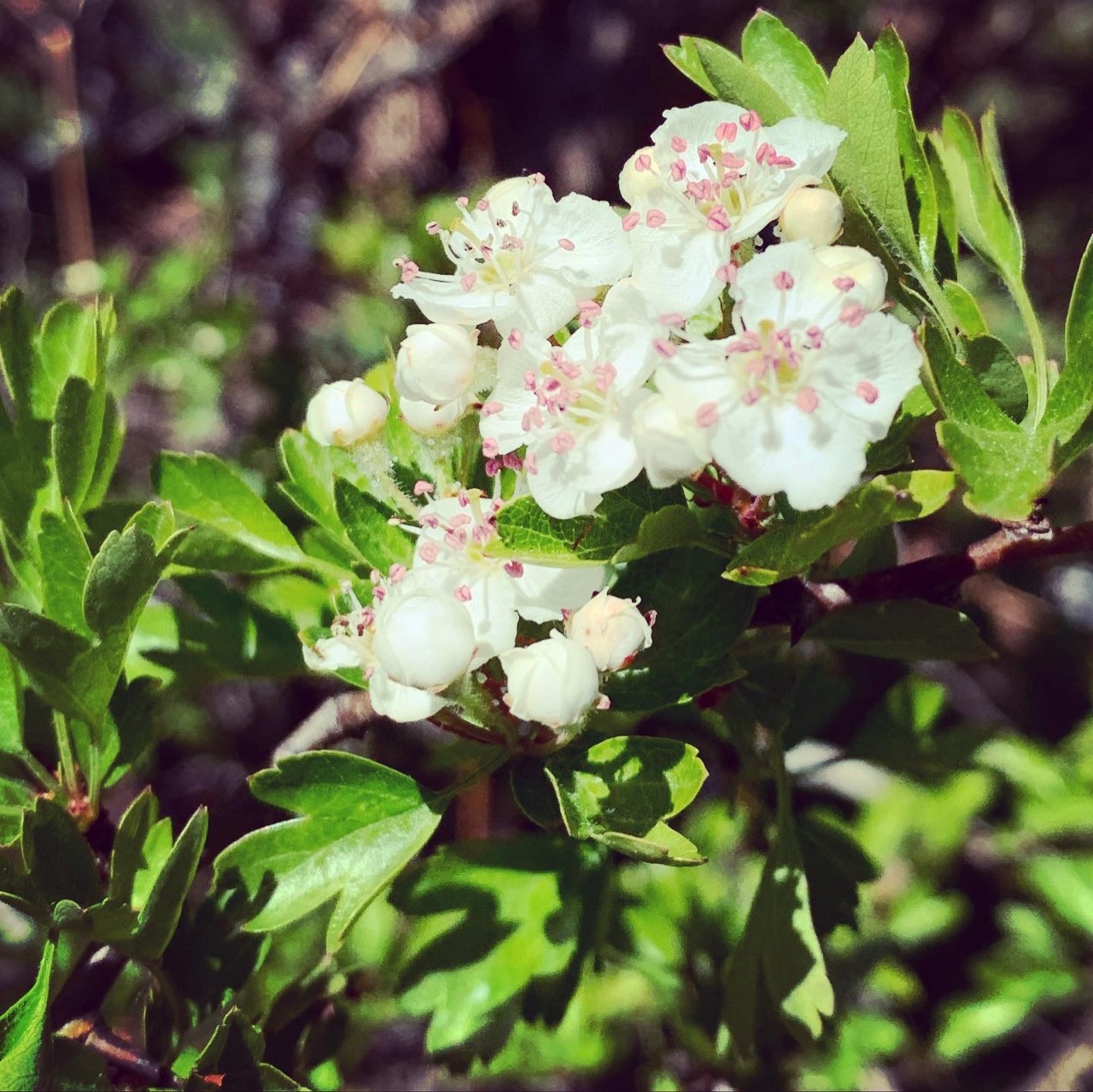 ピクニックのあと、斜面を降りていくと、サンザシの木々が赤い実をたくさんつけていて、クリスマスカードみたい!春の頃の写真も探してみました。