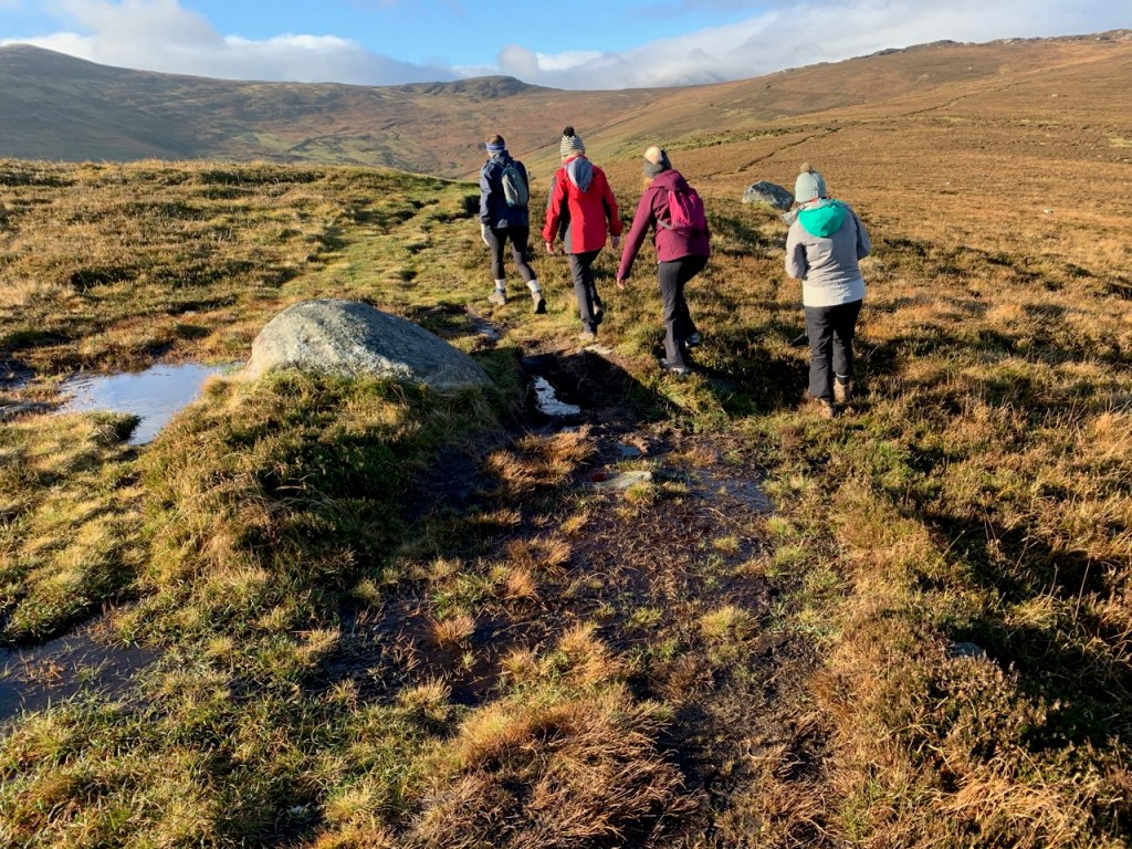 Cette fois-ci on a décidé de marcher au Mont Kanturk, qui se situe assez près de notre trajet de ‘Drummin -Carrigeenshinnagh’ du 28 octobre. Mais on est justement parties de l’endroit ou on est descendues la dernière fois, pour aller plus au nord-ouest (je crois). En tout cas c’est une partie de la petite chaîne de montagnes de l’autre côté du lac Lough Dan par rapport à chez nous.