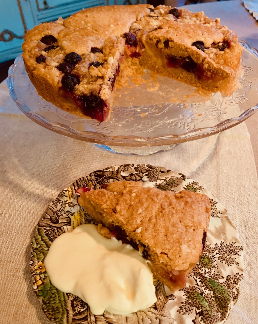 煮たりんごと、クランブルも入るケーキ。ブルーベリーも入れました。