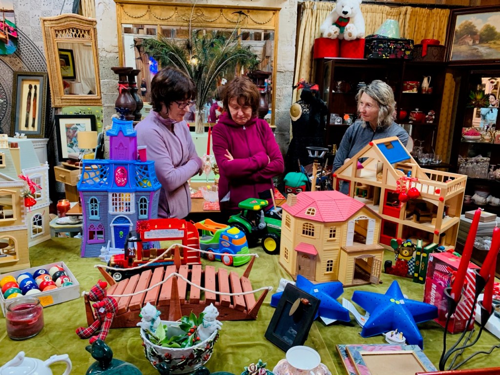 12月18日(金)ウオーキングのあとのお楽しみタイムはマーガレットの家の「ヴィンテージショップ」におじゃまして、暖かな暖炉のそばで、さくさくのミンスパイとお茶をご馳走になりました。