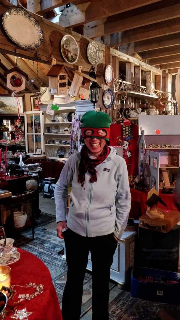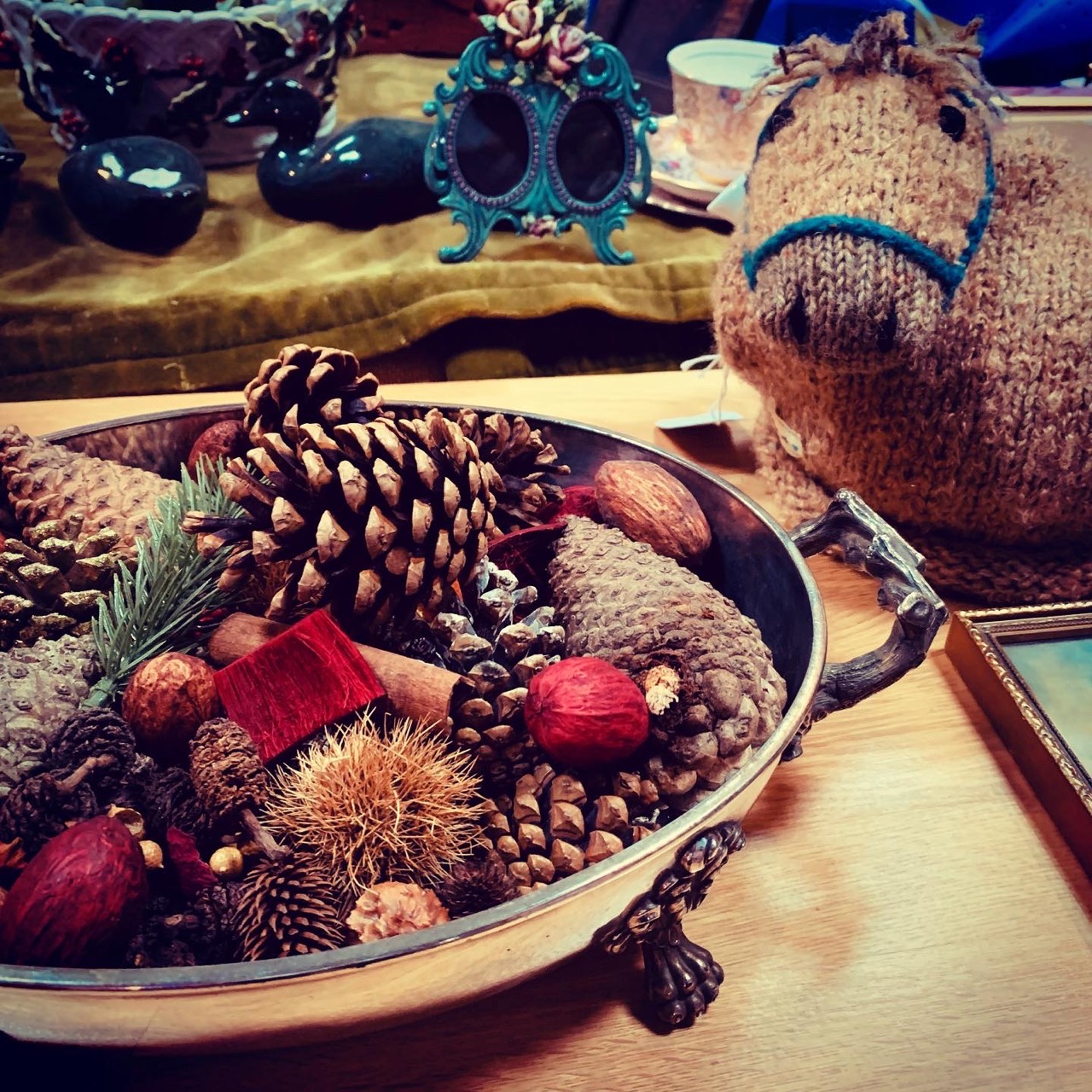 12月18日(金)ウオーキングのあとのお楽しみタイムはマーガレットの家の「ヴィンテージショップ」におじゃまして、暖かな暖炉のそばで、さくさくのミンスパイとお茶をご馳走になりました。