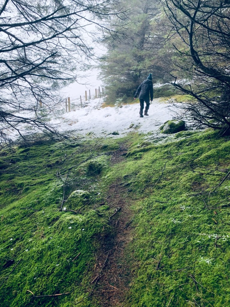 Mon 1 Feb, 9.37 km walk from Wicklow Way, through the woods. 9.37 km