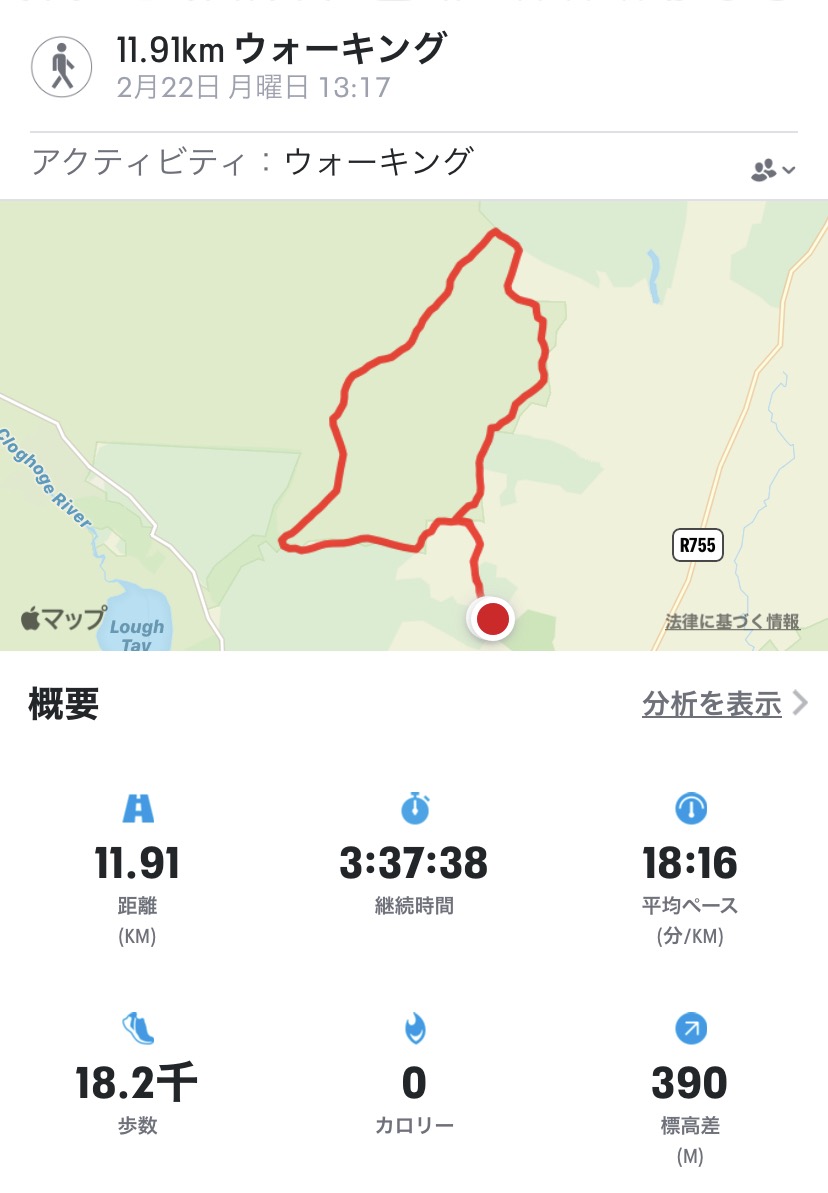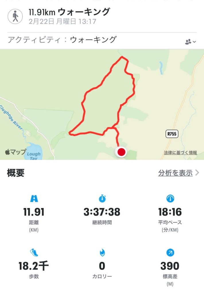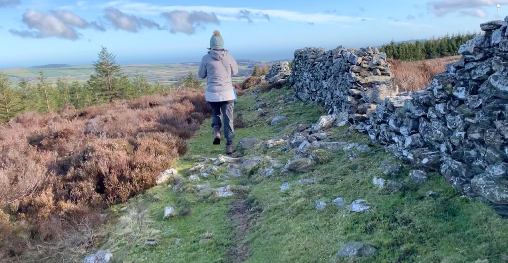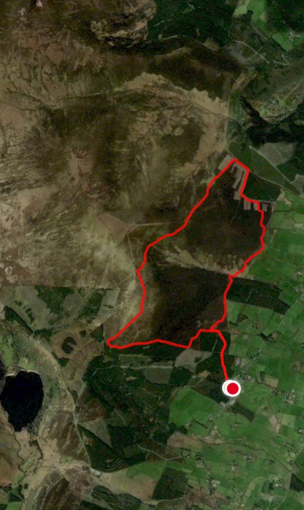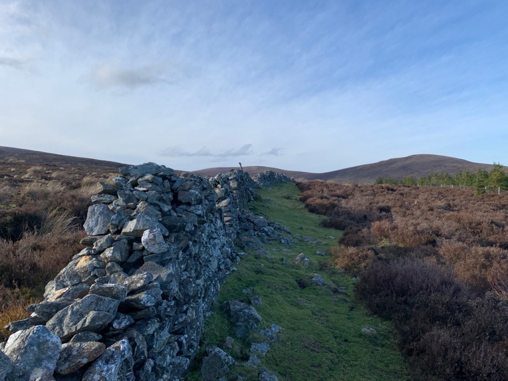 Mon 22 Feb 2021, up Djouce Mountain and skirted around the top, then went down on Wicklow Way to find the old Powerscourt wall. 11.91km