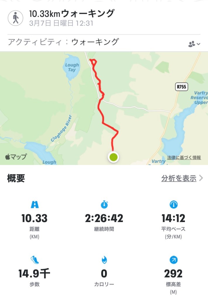 3月7日(日) 家からLough Tayの見晴らしまでバリナストーの森経由のいつもの道をのんびり往復。
