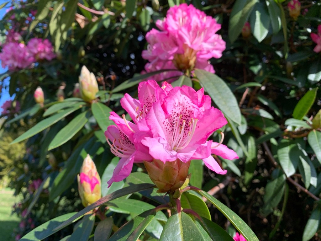 C’était vraiment chouette de retrouver le jardin, ses magnifiques plantes que j’adore, ne serait-ce que juste une petite demi heure… surtout que l’an dernier, on avait manqué la floraison des rhododendrons, comme c’était en plein milieu du confinement général.