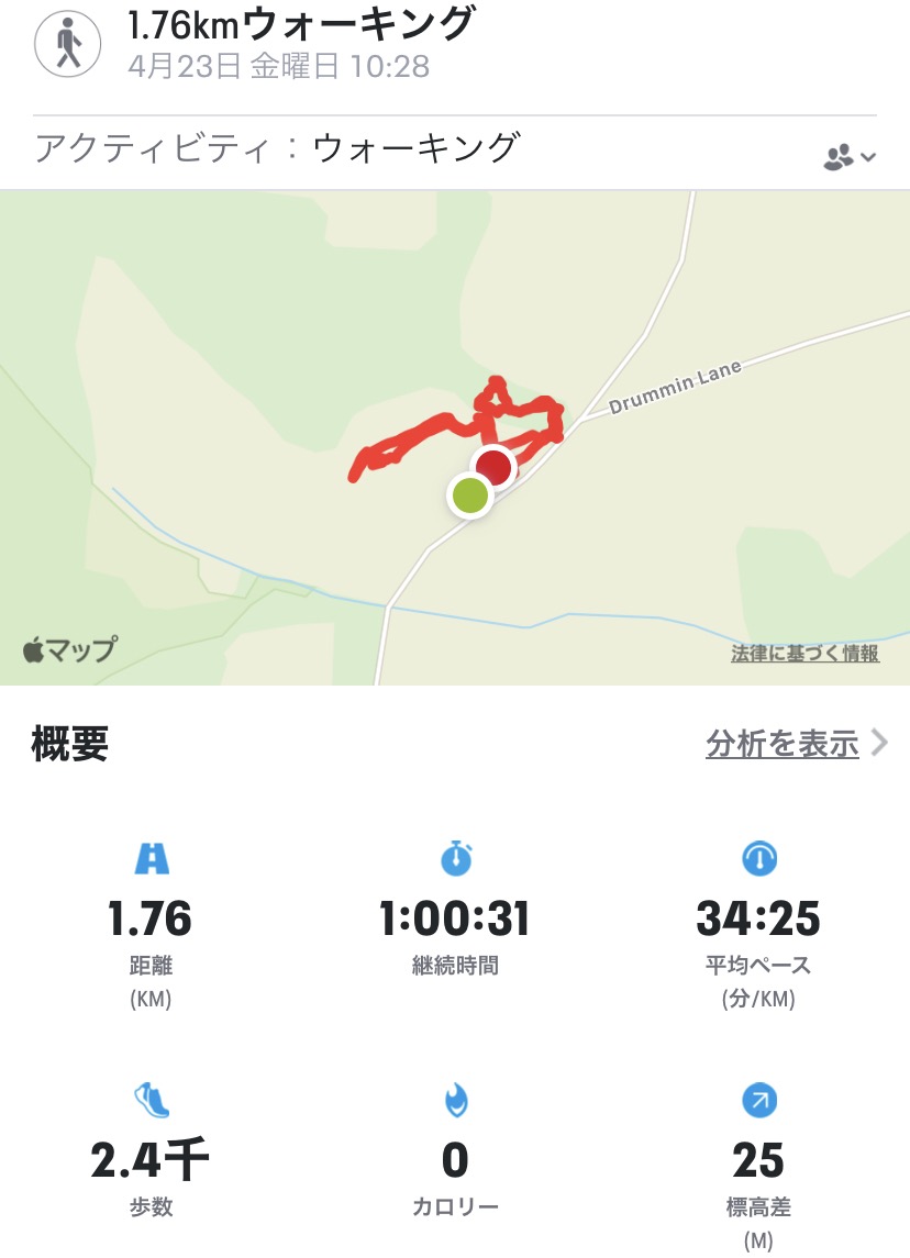 Fri 23 April 2021 Went around in my friend’s place, 1,76 km small slow stroll with a nice chat🥰