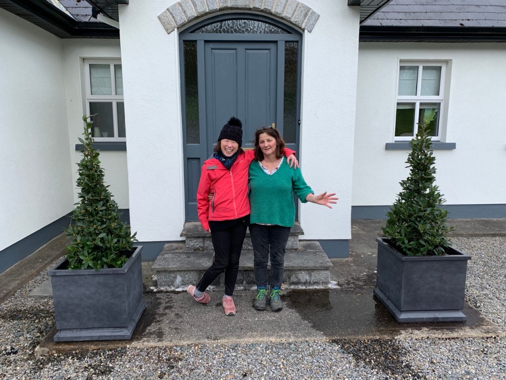 ちょと土が足りなかったので、自分で追加を買いに行って(玄関前の植木鉢2つに大きなコンポストを3つ入れた)、今日はまたマーガレットが来てくれて、玄関前のダフネちゃんを植え込みました。
