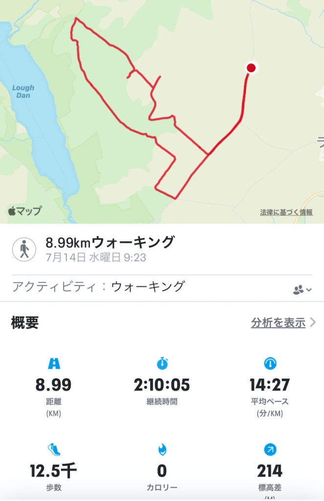7月14日(水) 久しぶりに自宅からウイックロウウェイを8.99 km。