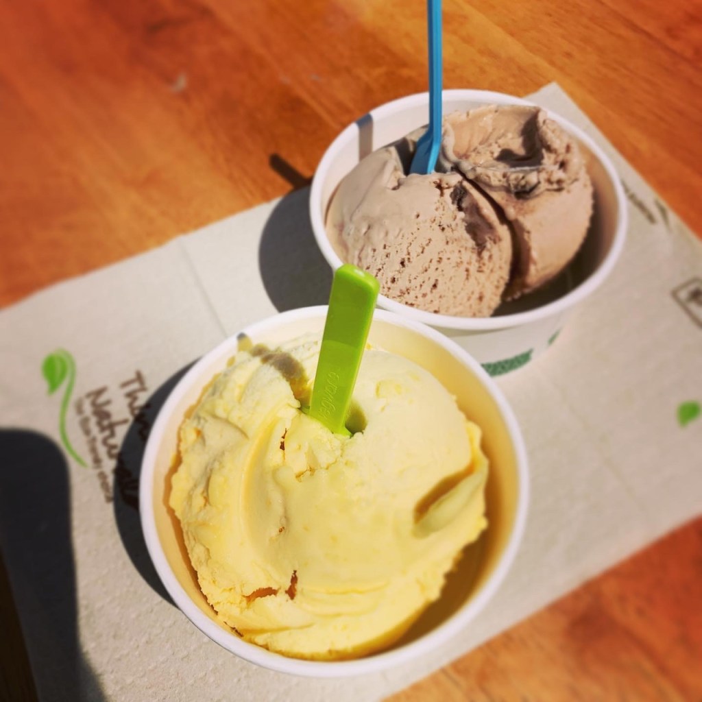 D’habitude je ne touche jamais aux glaces ou aux sorbets, mais là, j’ai goûté à la glace aux mangues qui était délicieux, dans un petit magasin à Delgany.