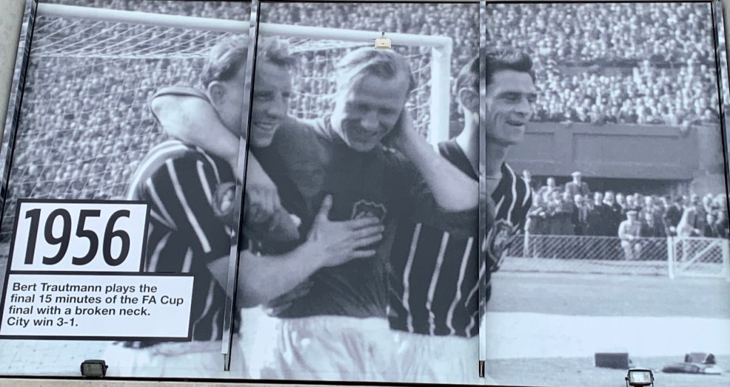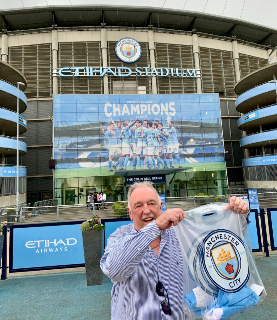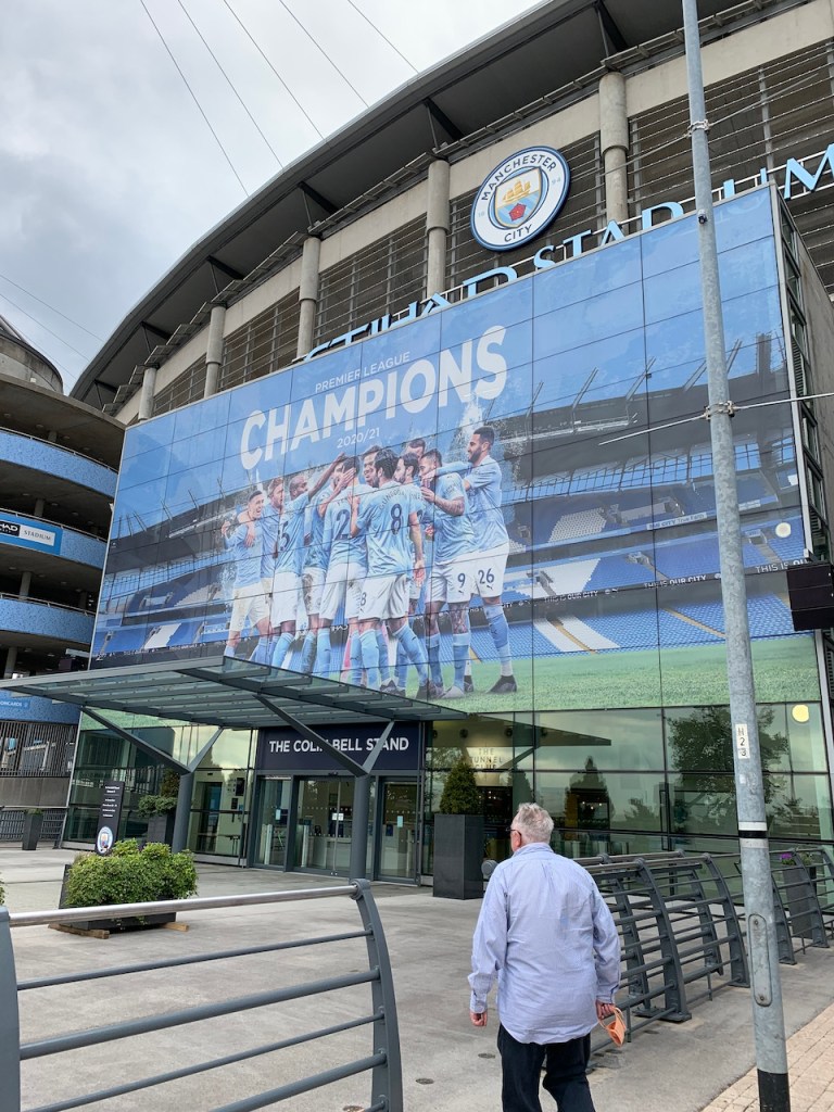 Ce qui était intéressant est qu’il y avait des photos de différents moments – souvenir de l’équipe sur le mur extérieur du stade, du début jusque maintenant, mais surtout des photos des footballeurs légendaires des années 60 et 70, les héros qui ont marqué la vie de tant de fans (dont bjm)!! Ça lui rappelle beaucoup de moments heureux, en compagnie de son frère qui le prenait à l’ancien stadium (qui n’est pas celui-ci, mais un autre, appelé ‘Maine Road’, qui se trouvait très près du quartier qu’ils habitaient à l’époque, qui n’existe plus maintenant.)