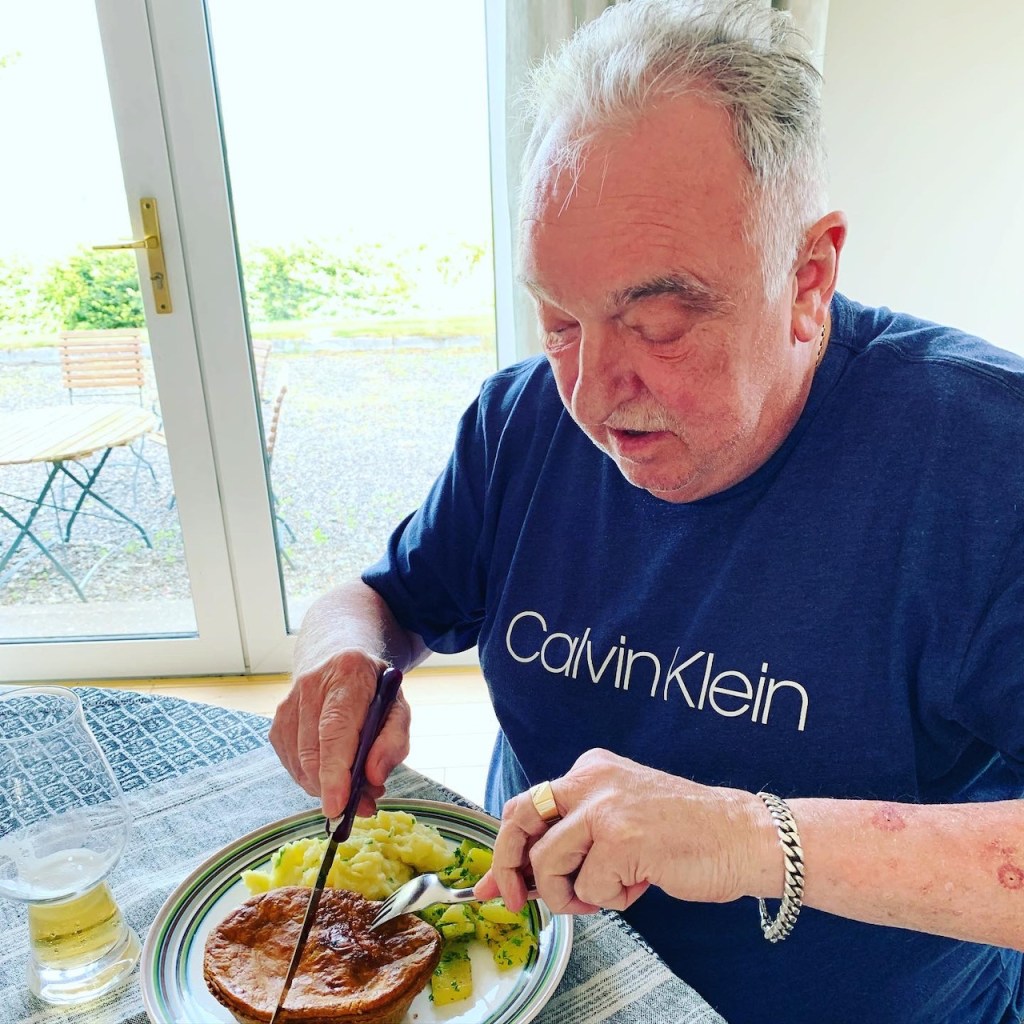 マンチェスターの帰りに、親戚のニールとジャッキーのおうちに立ち寄ったとき、地元の肉屋さんの肉入りパイをお土産に持たせてくれました。その日に買ってきて、ちゃんとプラスチックのでっかいボックスに入れておいてくれたので、そのまま荷物に入れて、無事にアイルランドへ持ち帰り、冷蔵庫へ。