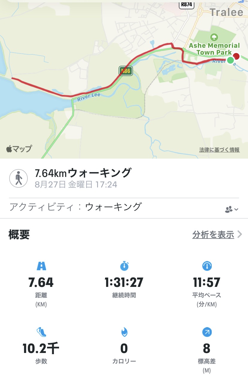 8月27日(金) 到着後、夕方さっそくホテルの近くを散歩7.64 km。