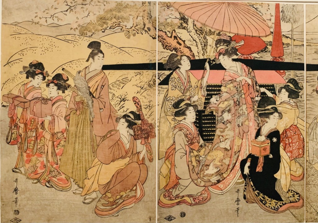 自分は気分的にはまだ夏の終わりなのだけれども(9月は晴れが多くて、まだ夏の終わりを満喫)、浮世絵のなかの世界は季節感のいろいろの作品が混じっていて、特に梅の花だったり凧揚げをしているところを見たら、冬のものだなーと感じて、そう感じる自分にまた驚いていました。やっぱり日本人のDNAが組み込まれているのかな?