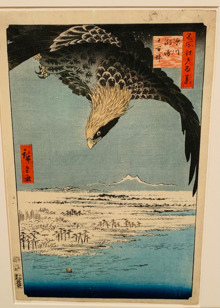 Cette fois-ci, il y avait des thèmes d’hiver comme le cerf-volant du nouvel an ou le jardin des pruniers. Mi septembre, même à Dublin, il faisait encore assez chaud avec l’amibiance de fin d’été… et je me sentie un peu en décalage par rapport à ces images hivernales, alors que ce n’était pas à moi de ‘coller aux saisons des images’ de l’expo! Ça m’a fait tout drôle. Je reviendrai donc voir ces images une fois que la saison (en réalité) est plus dans le froid, fin novembre?