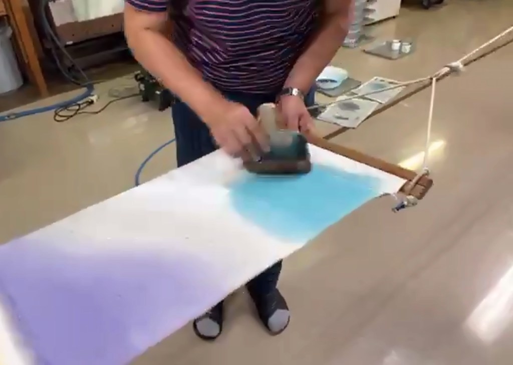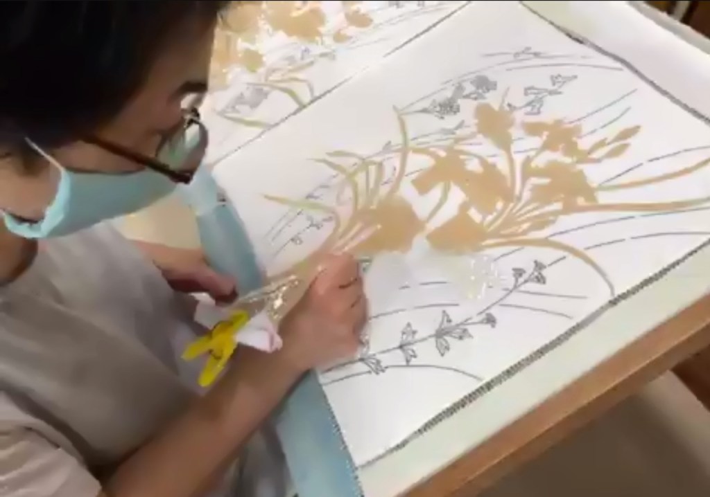 その輪郭のなかに色を入れ、ぼかしなどの技法も使う熟練の技。