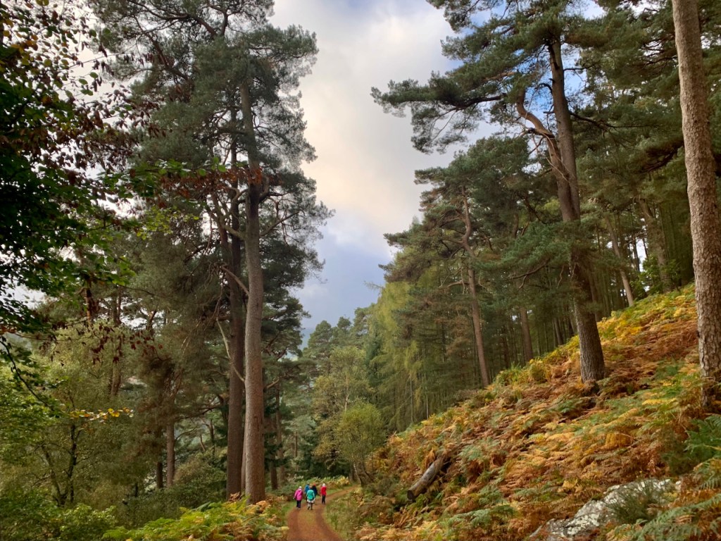 今度はラウンドタワーを横に見て、グレンダサンの川沿いの道を歩き、カマデリのほうへ森の中を登り、アッパーレイク沿いのマイナーズロードへ降りました。
