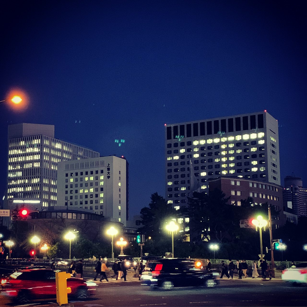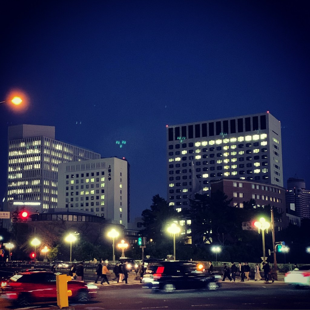 En arrivant à 17h à Yotsuya, en sortant du métro, j’ai retrouvé le paysage si cher, dans l’ambiance nocturne.