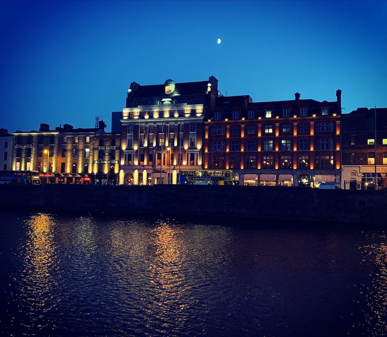 美容室から出てきたら、もうすっかり黄昏時。ふらふらとテンプルバーからリフィー川沿いを散歩して、月の光を浴びて気持ちよかったけど、ちょと人出も多かった。なるほどクリスマスへ向けて街も混んできているのだなーという感じでした。