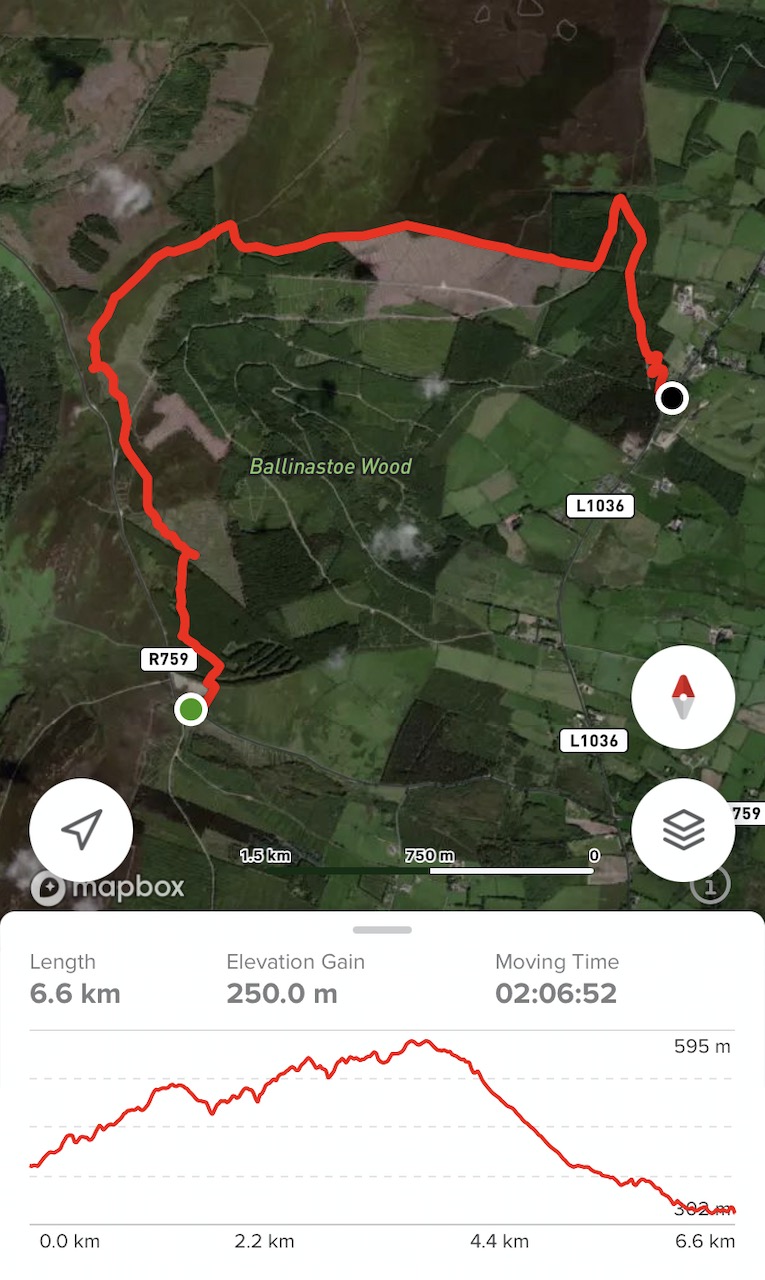 さすがにDjouce山頂上へ向かう道には行かず、反対側のBallinastoe Car Parkのほうへ降りて、迎えに来てもらいました。