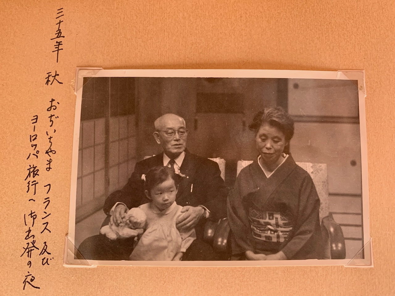 Lors de mon séjour à Tokyo en novembre dernier, j’ai pris en photo ces vieilles photos en noir et blanc de la famille et j’ai beaucoup parlé de mes grands parents avec ma mère. J’en mets quelques unes pour vous montrer un peu de cette ambiance familiale de l’ère Showa. J’étais encore une toute petite fille.