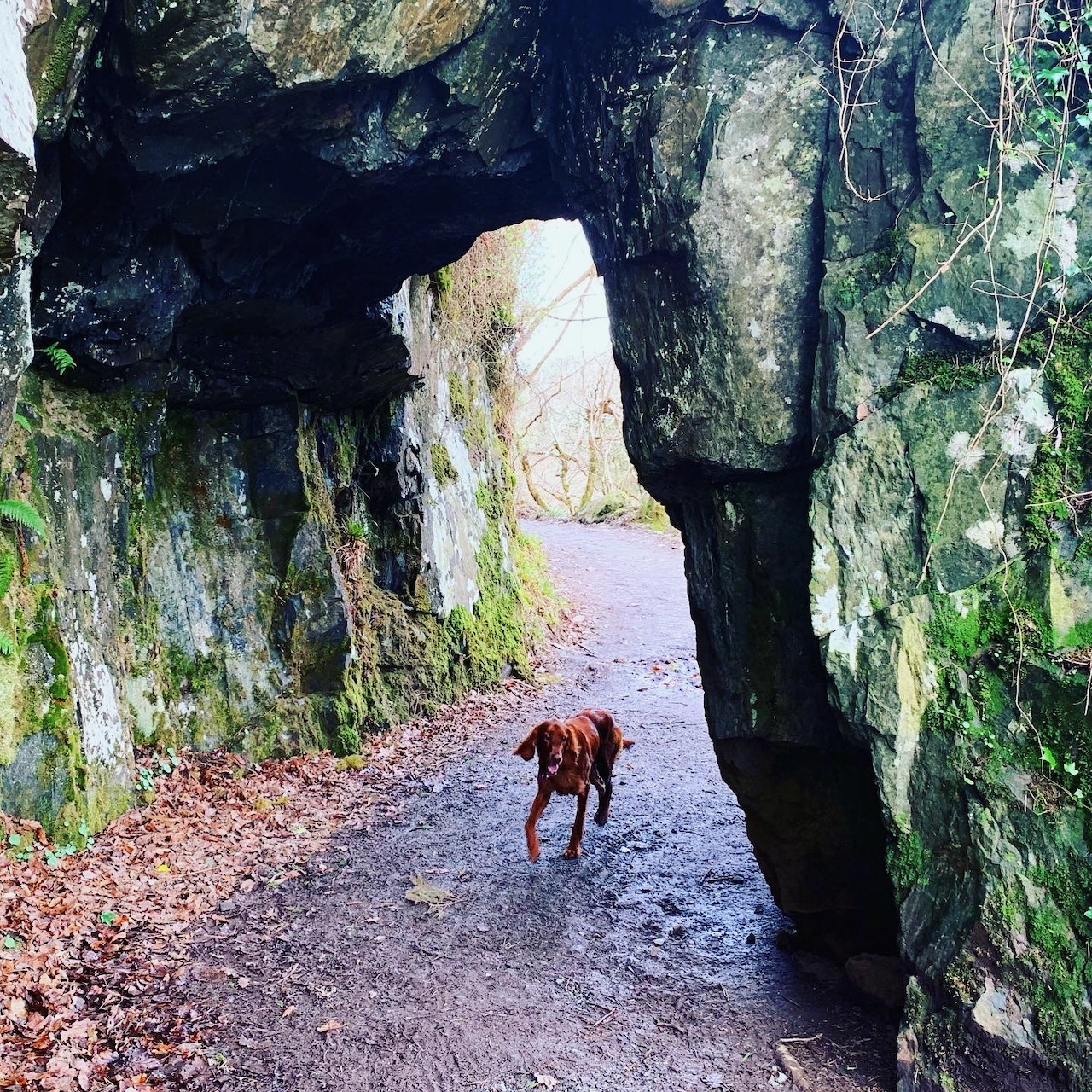 以前に来たときは、奥のほうまで車で入って、デヴィルズグレンの川沿いを歩いたけれども、今回はこんもり山のなかを辿る道を、山にいったん登ってから、川沿いへ。