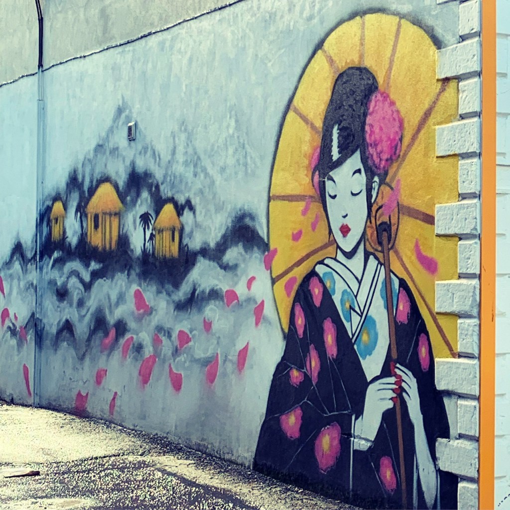 ホテルのそばの小さな路地に着物のお姉さんがいた。景色が椰子の木なのがミスマッチだけど。