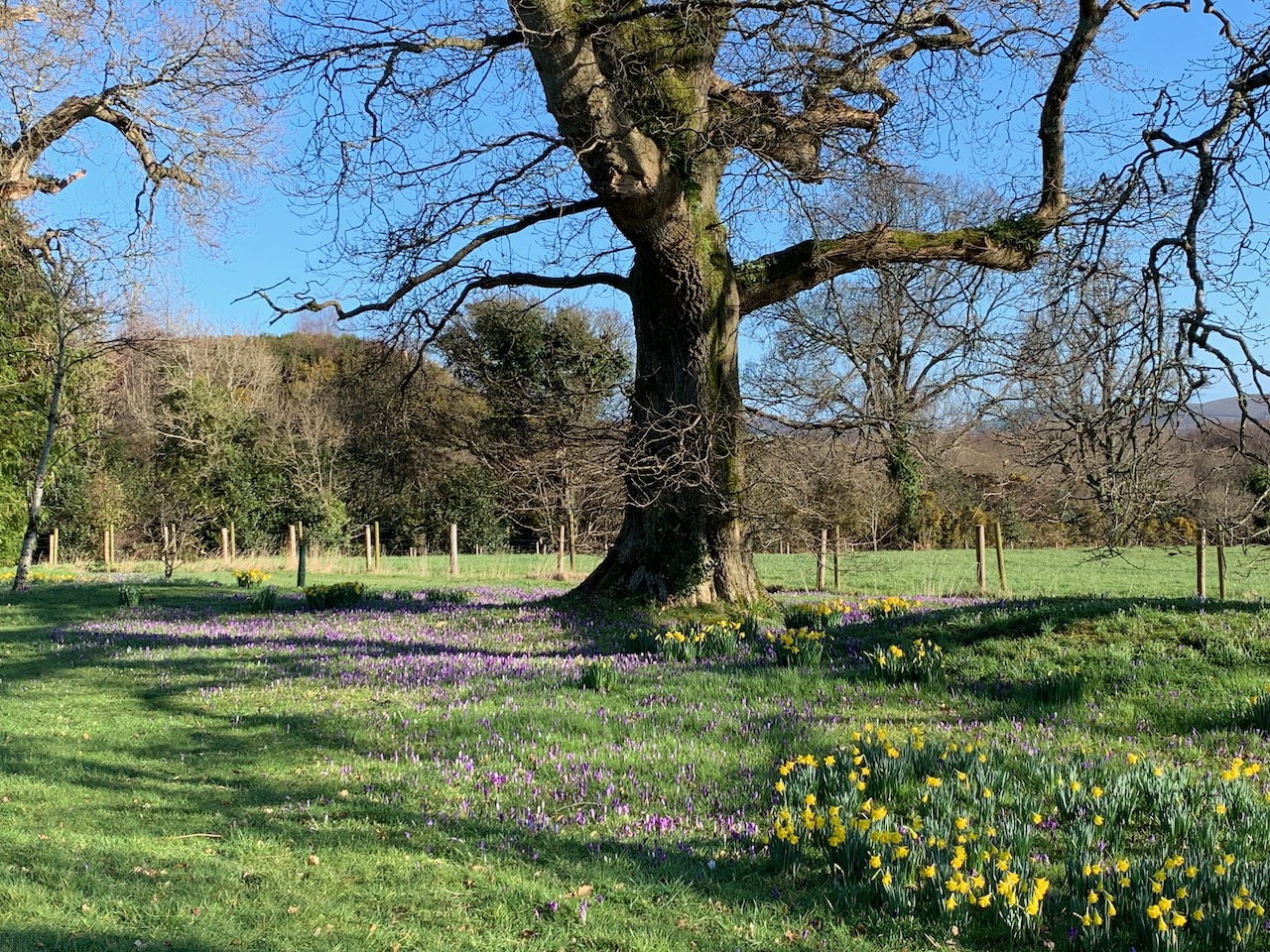 石楠花が咲き始め、草原はクロッカスが一面に顔を出して、池の水の流れにも春がやってきた。