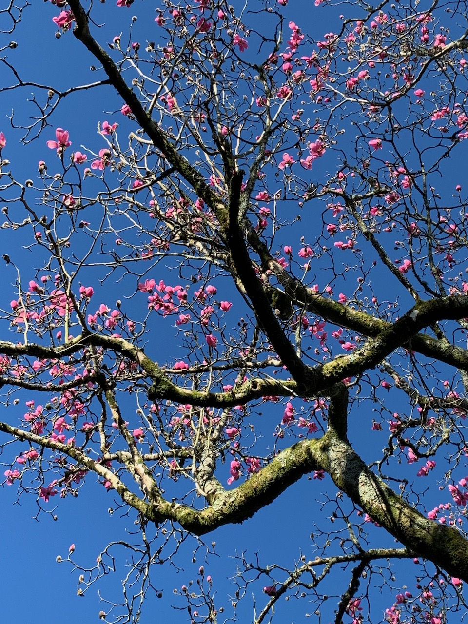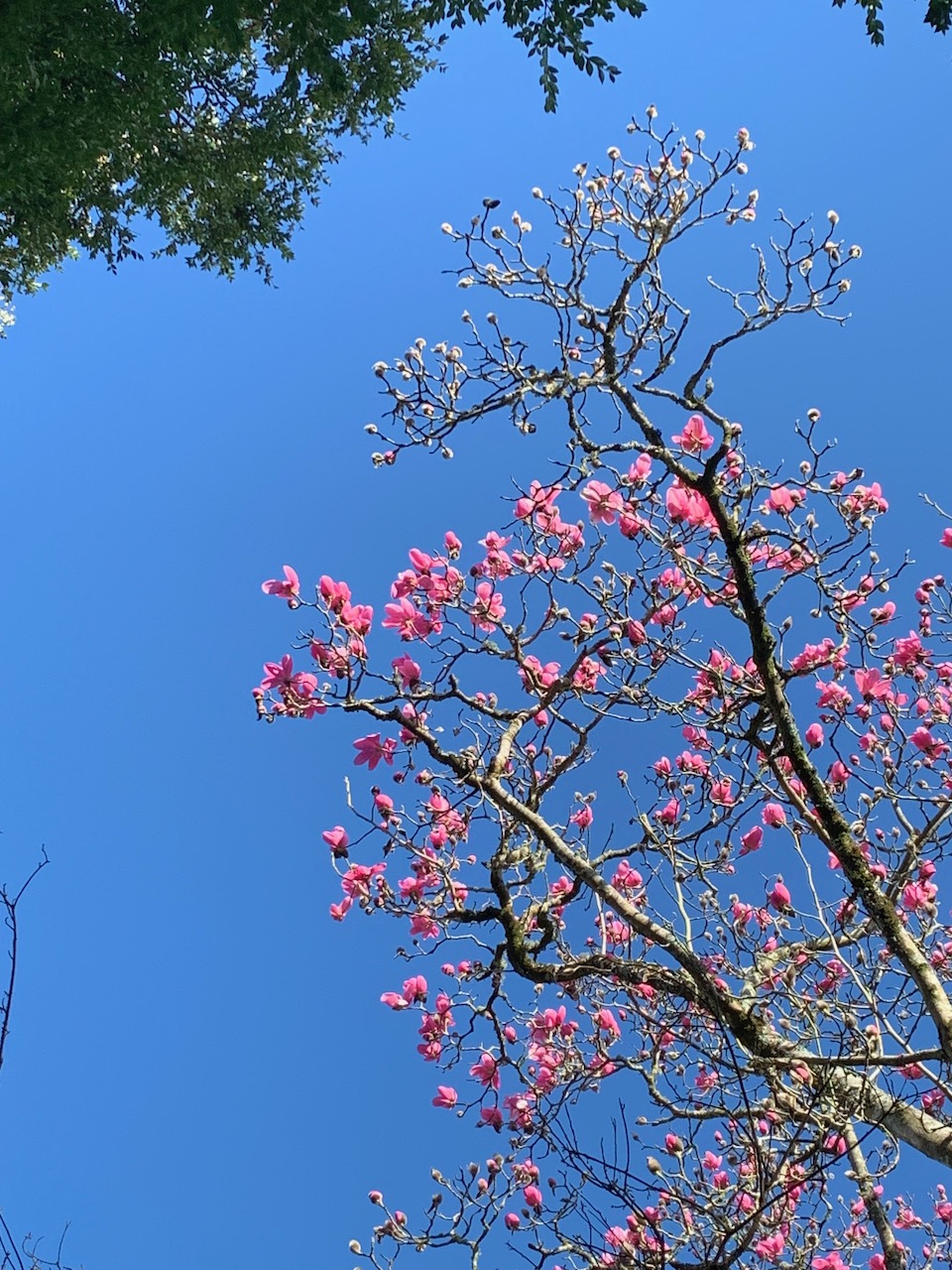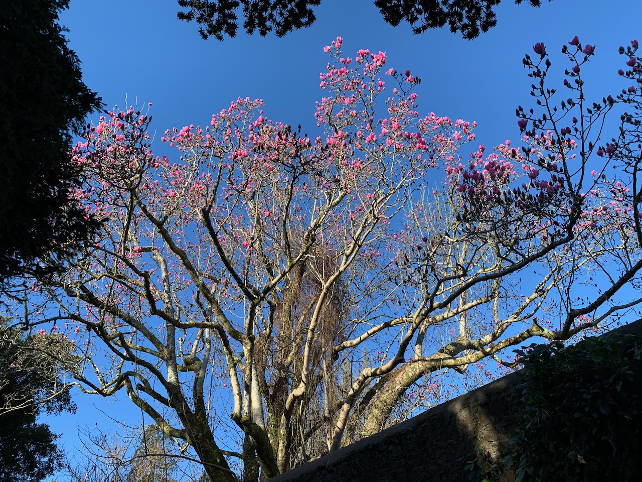 毎年楽しみに待っている木蓮も花が咲き始め、青空に映えてとても美しい。