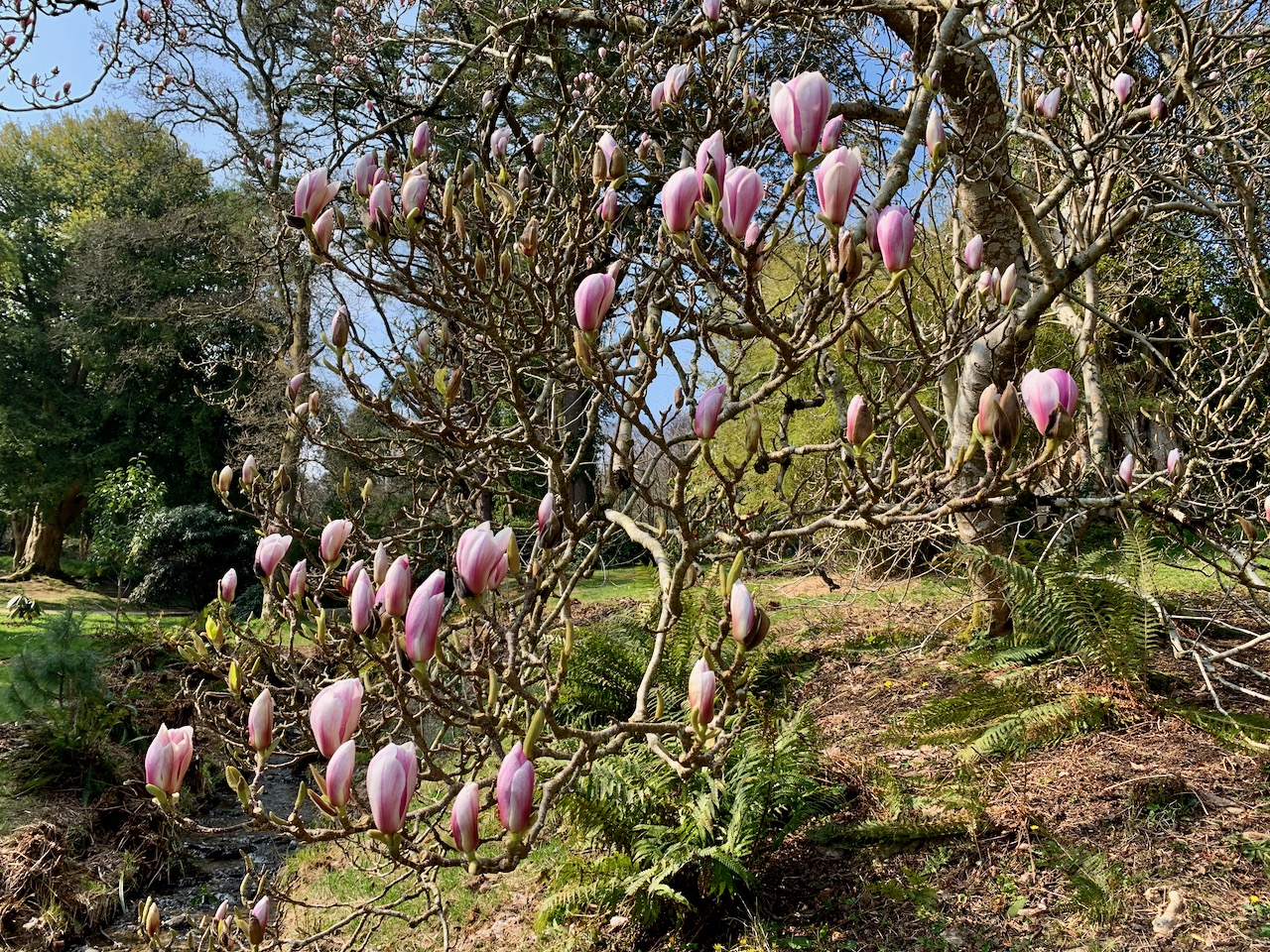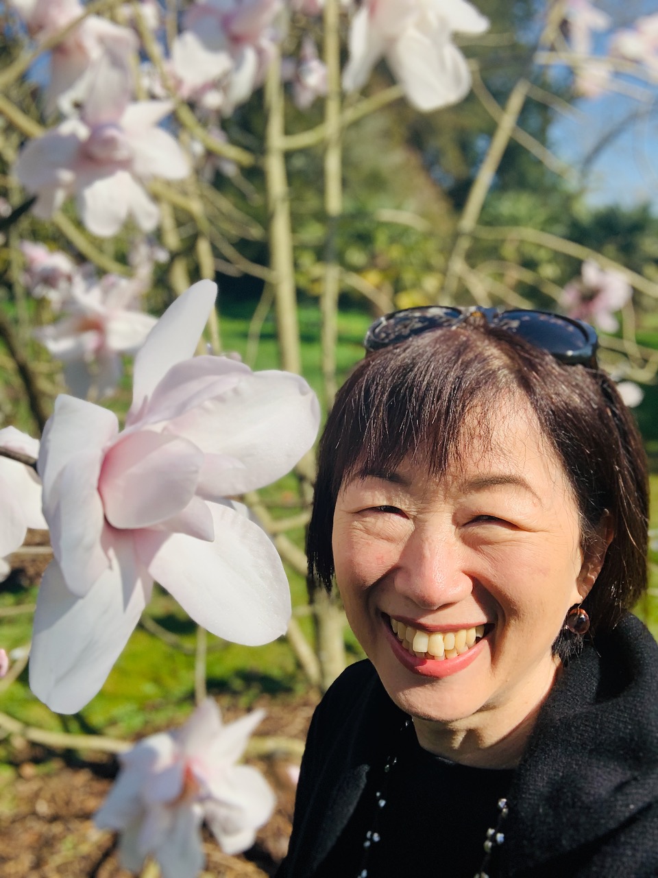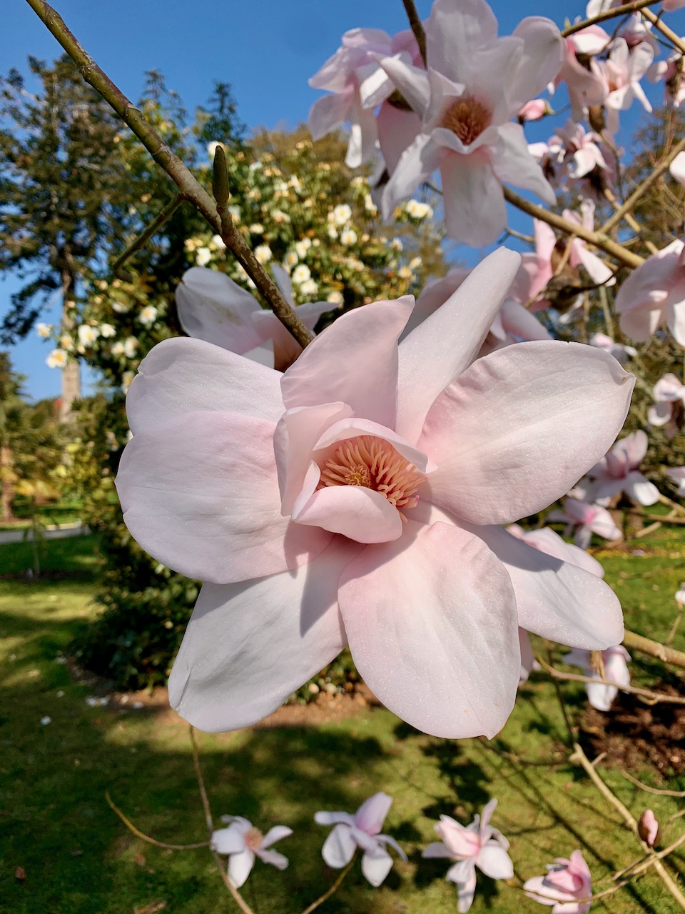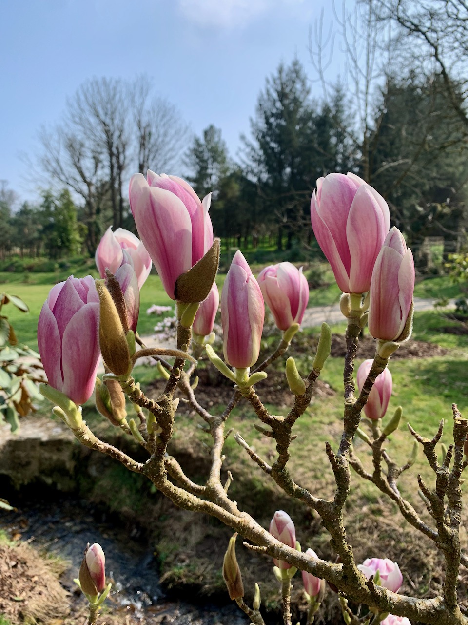 裏の壁際の大きな木蓮の花はそろそろ終わりがかりだけれども、園内を流れる小さな川のほとりの木蓮と、今年は初めてもうひとつ、小さな木も植えられていて、それぞれに違った色でとても美しい。