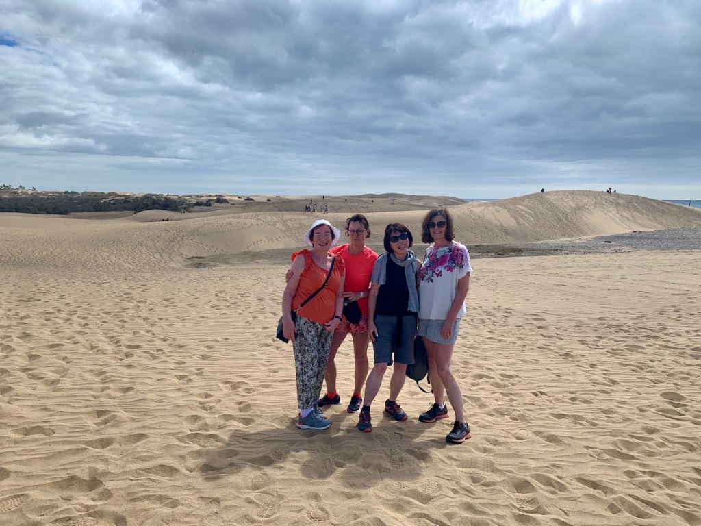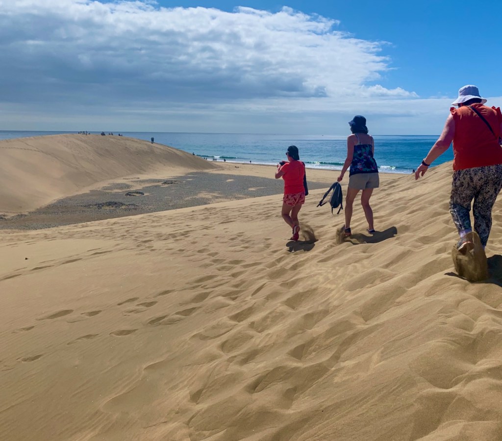 Le sable doré de Maspalomas était tellement beau. Le soleil tapait, mais pas trop chaud et évidemment quand on est descendues vers la mer, il y avait de l’air frais, bien agréable.