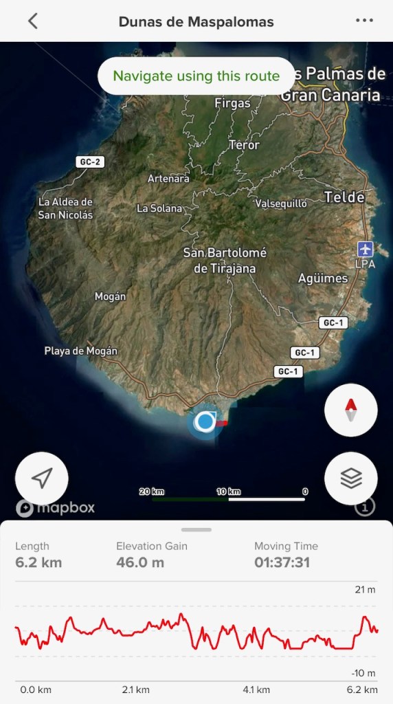 ウオーキングのアプリで調べたら、なんと砂丘を一周するコースがあるではないか。