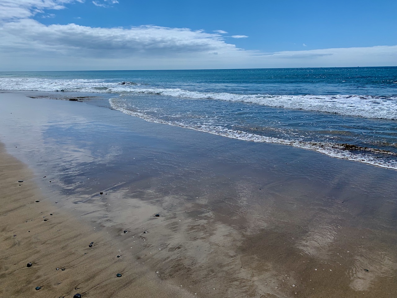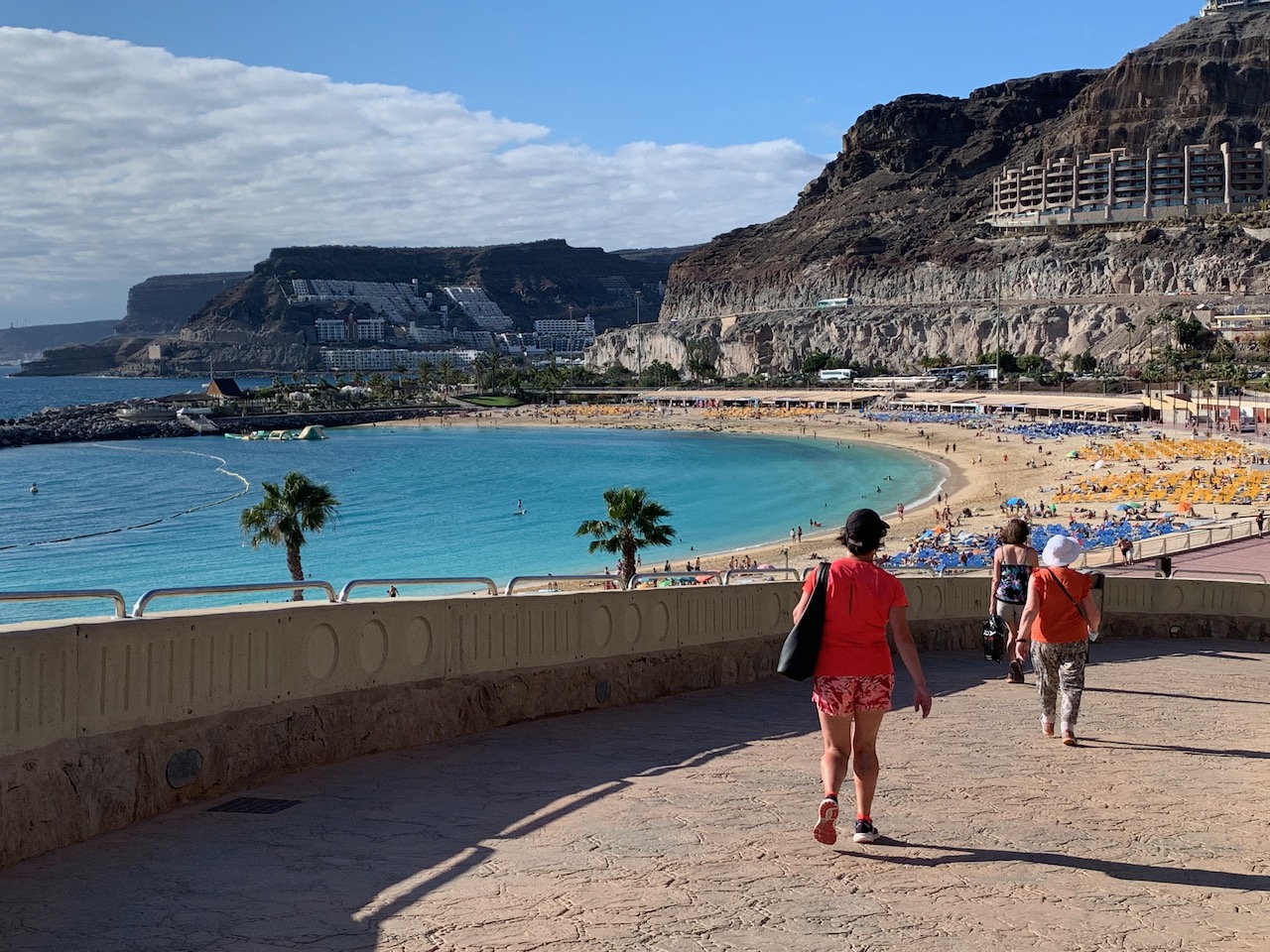 Le sable doré de Maspalomas était tellement beau. Le soleil tapait, mais pas trop chaud et évidemment quand on est descendues vers la mer, il y avait de l’air frais, bien agréable.
