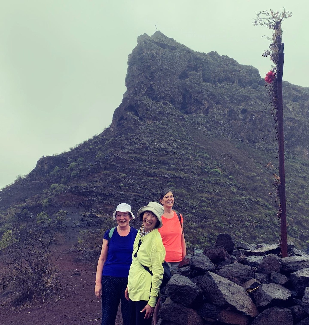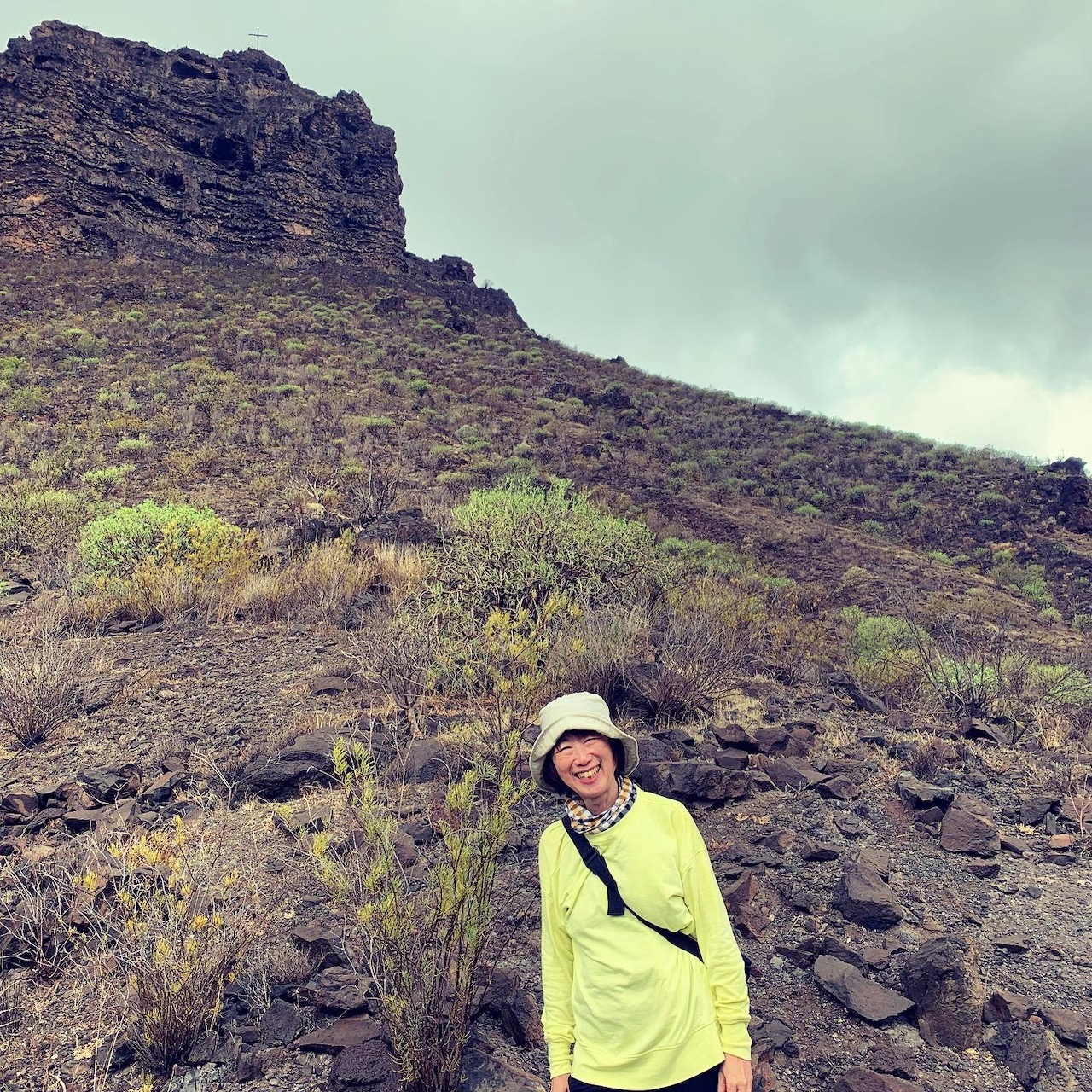 どんどん登ると岩山になりました。登り切ったところに十字架があるけど、もっと高いところの岩山の頂上にも十字架が見える。