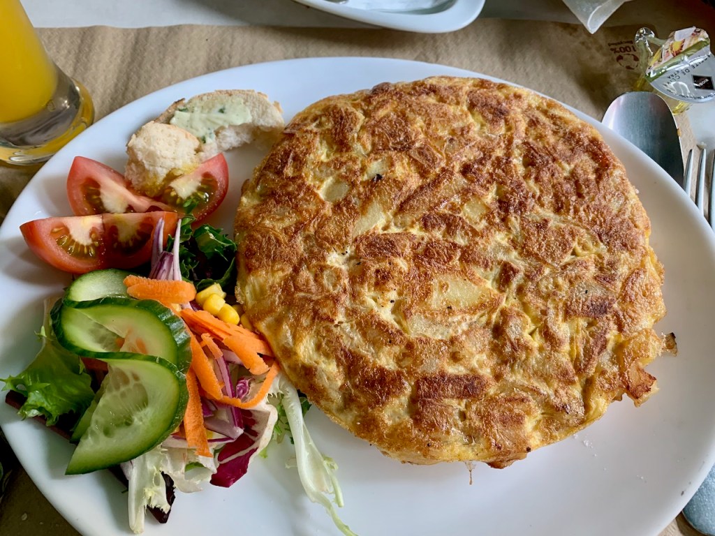 途中すこし雨に降られたので、村へ到着したら、ほっとして、じゃがいもの入ったふわふわの美味しいスペイン風のオムレツを食べました。とても美味しいランチだった。