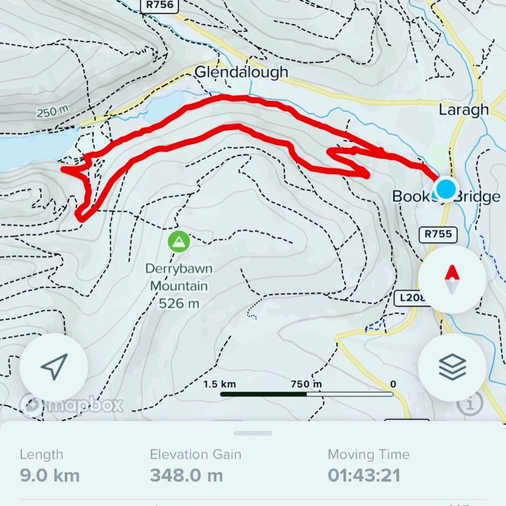 Fri 6 May 2022, quick sporty and chatty morning with my friends on Derrybawn, Glendalough. Perfect way to finish the week. Very green and fresh. 9.0 km elevation gain 348m