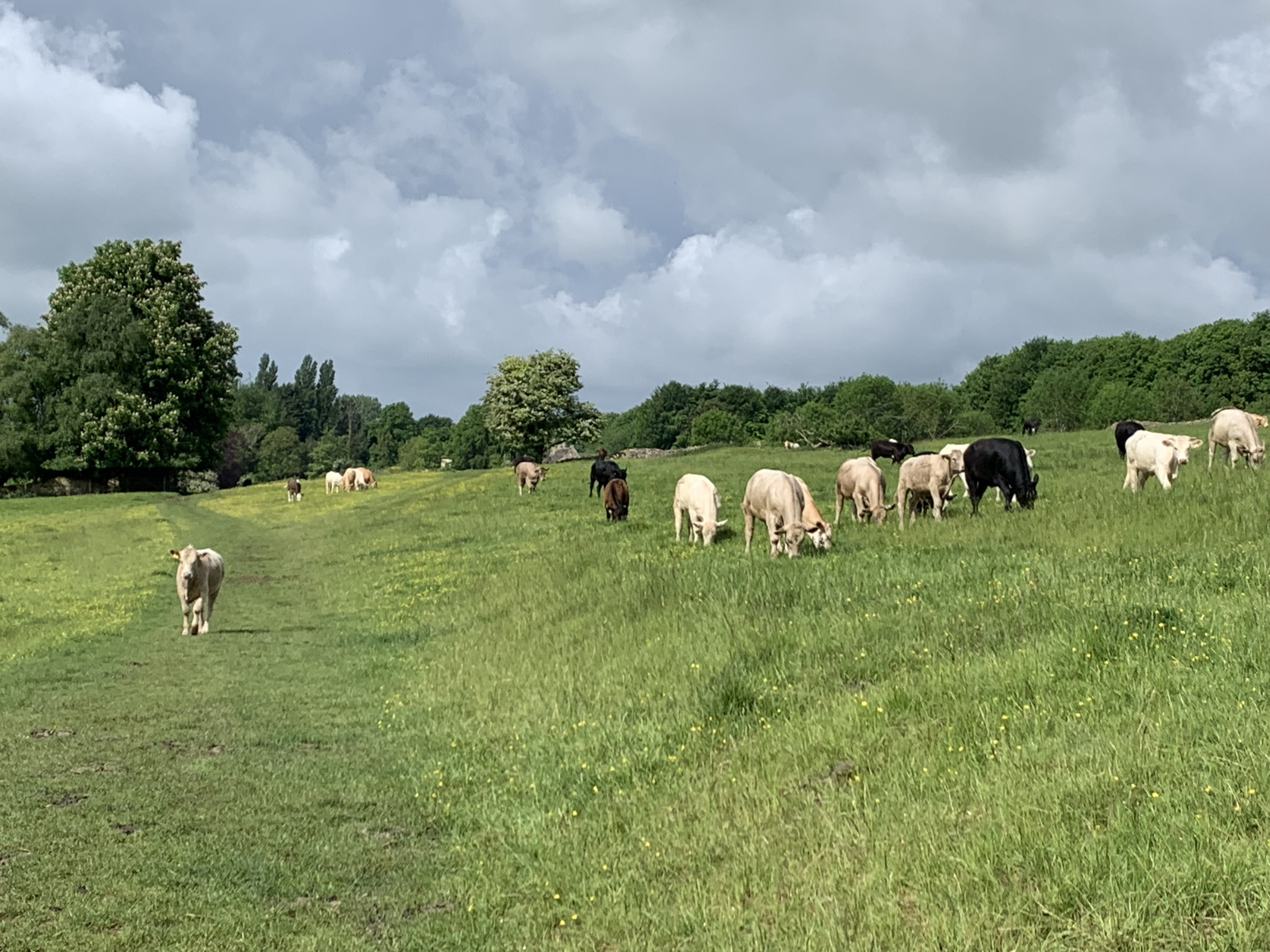 Thu 19 May 2022. A bit more familiar with the area, just a quick morning walk and met lots of curious cows and turned around. 1.7 km in Swinbrook village, UK.