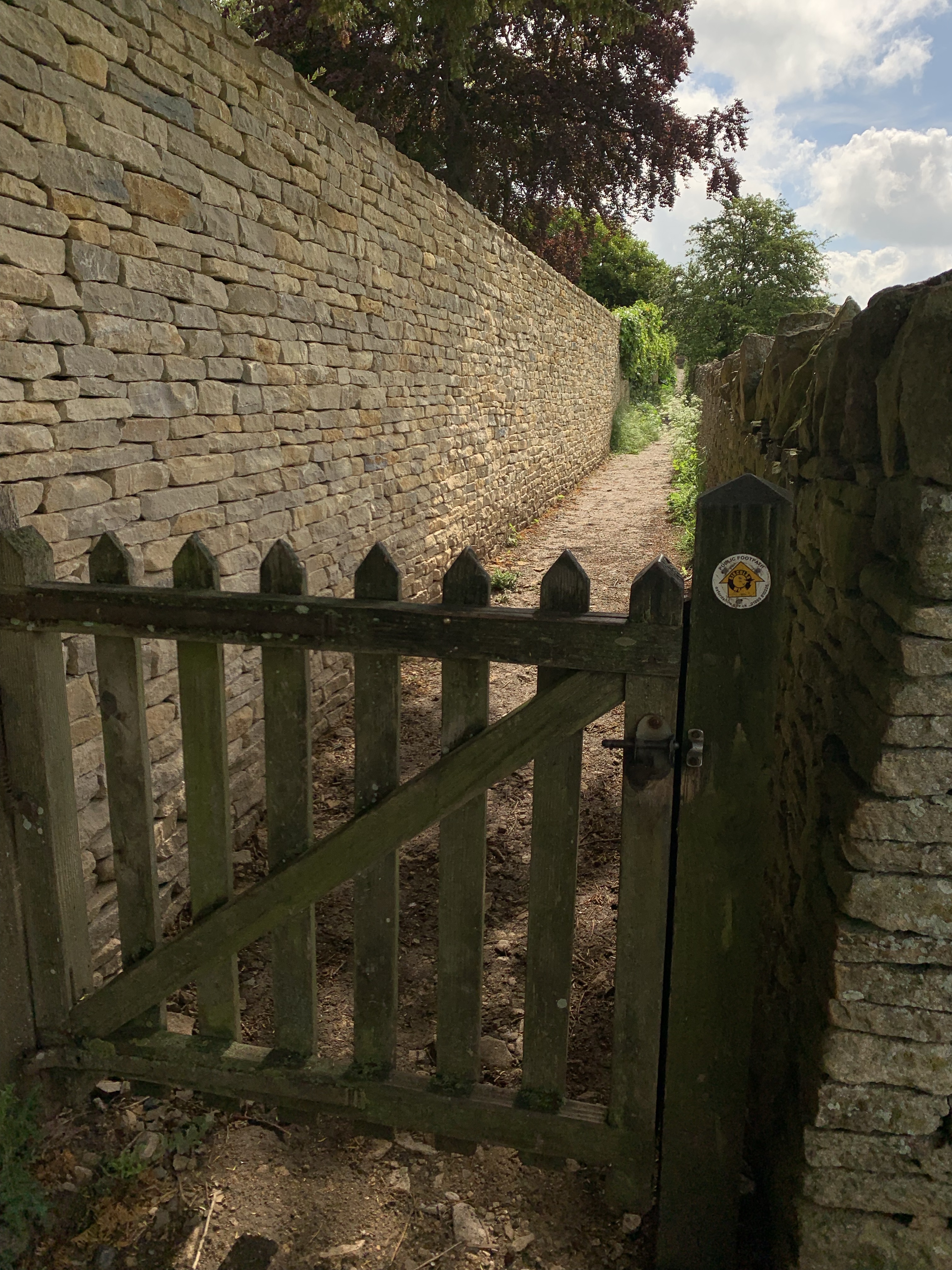 村の教会の横を入ると裏の野原に出る小径があって、区切りにドアがついています。
