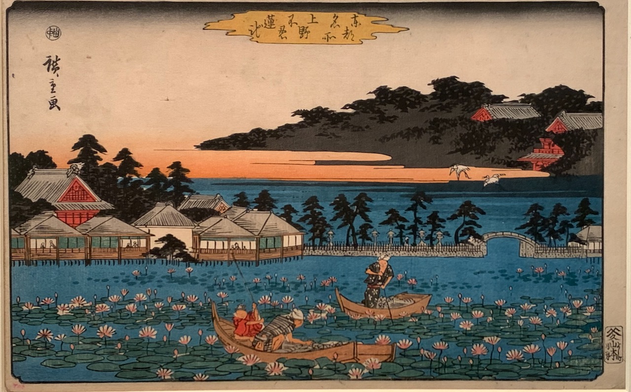 広重や、中国の屏風。不忍池の蓮の花がかわいい。