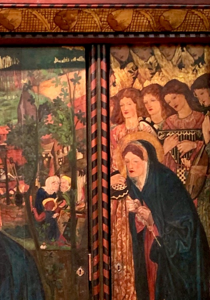 フィリップ・ウェブ(Philip Webb)が設計し、エドワード・バーン・ジョーンズ(Edward Burne-Jones)が絵を描いてウイリアム・モリス夫妻(William Morris) の結婚祝として贈ったとされる家具。