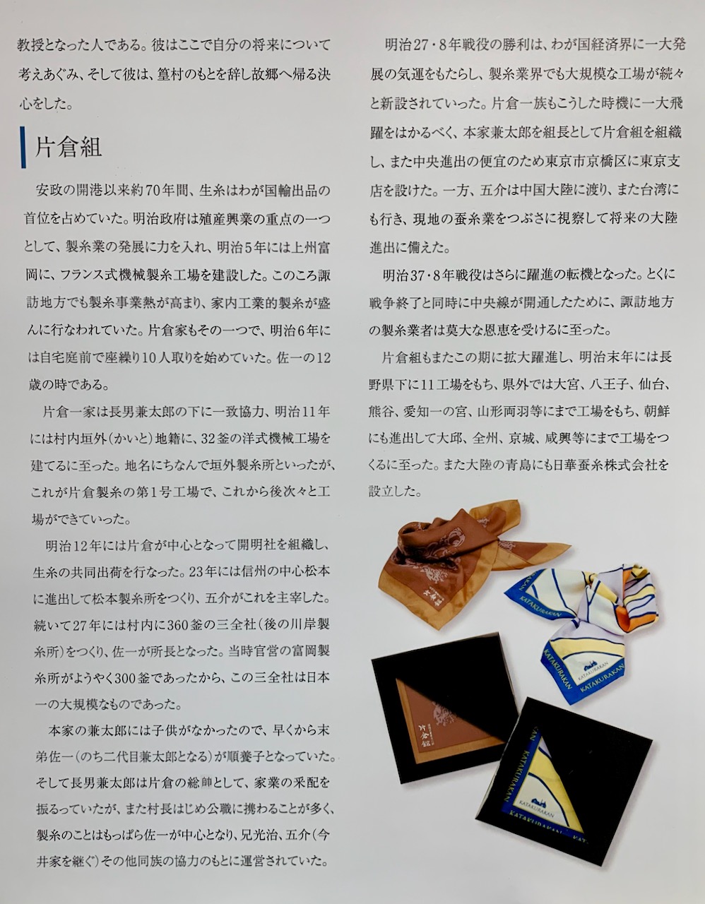 La famille Katakura possédait les fabriques de soie dans la région à l’ère de Meiji. Avec la manufacture des tissus de soie et l’exportation, ils ont fait une énorme fortune.