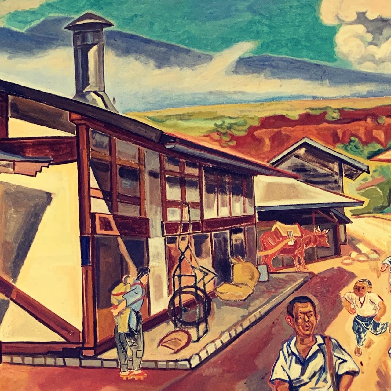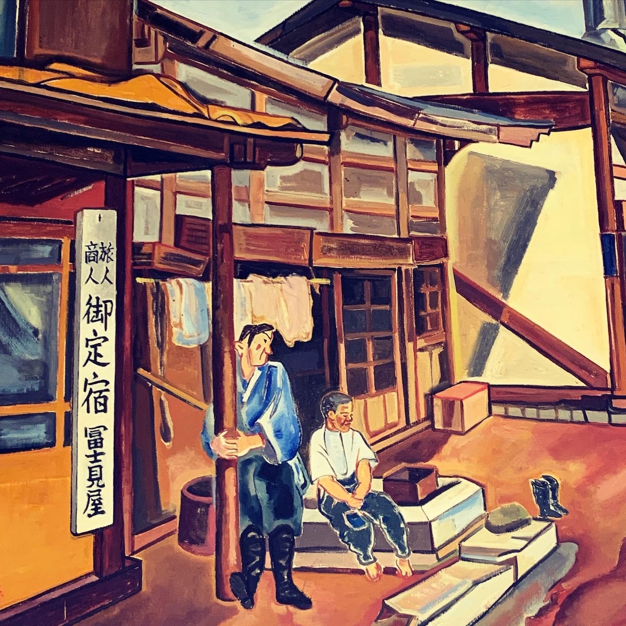 大広間の向こうにかかっていた立派な絵は、小林猶治郎(こばやし・なおじろう/1897年静岡生まれ)の「宿場 富士見」。