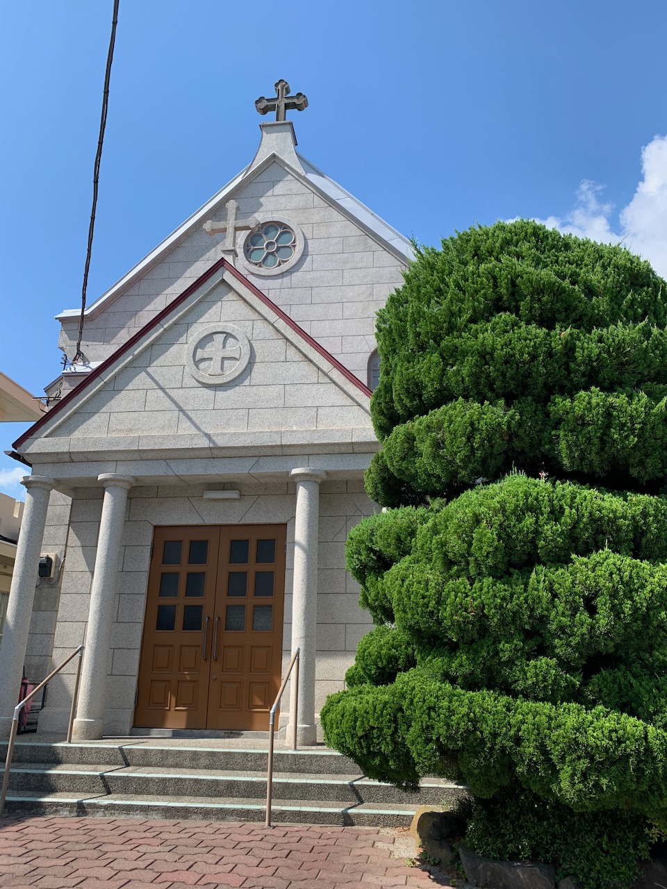 今回の旅のハイライトは、12歳当時の母が1945年7月空襲に遭ったあと、先生や友だちと身を寄せた甲府カトリック教会です。