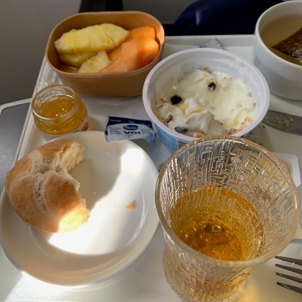 ヘルシンキからダブリンのFin Airフライトでまたちょっと眠って目覚めたら、朝ごはんを出してくれました。コップがIttalaで素敵でした。