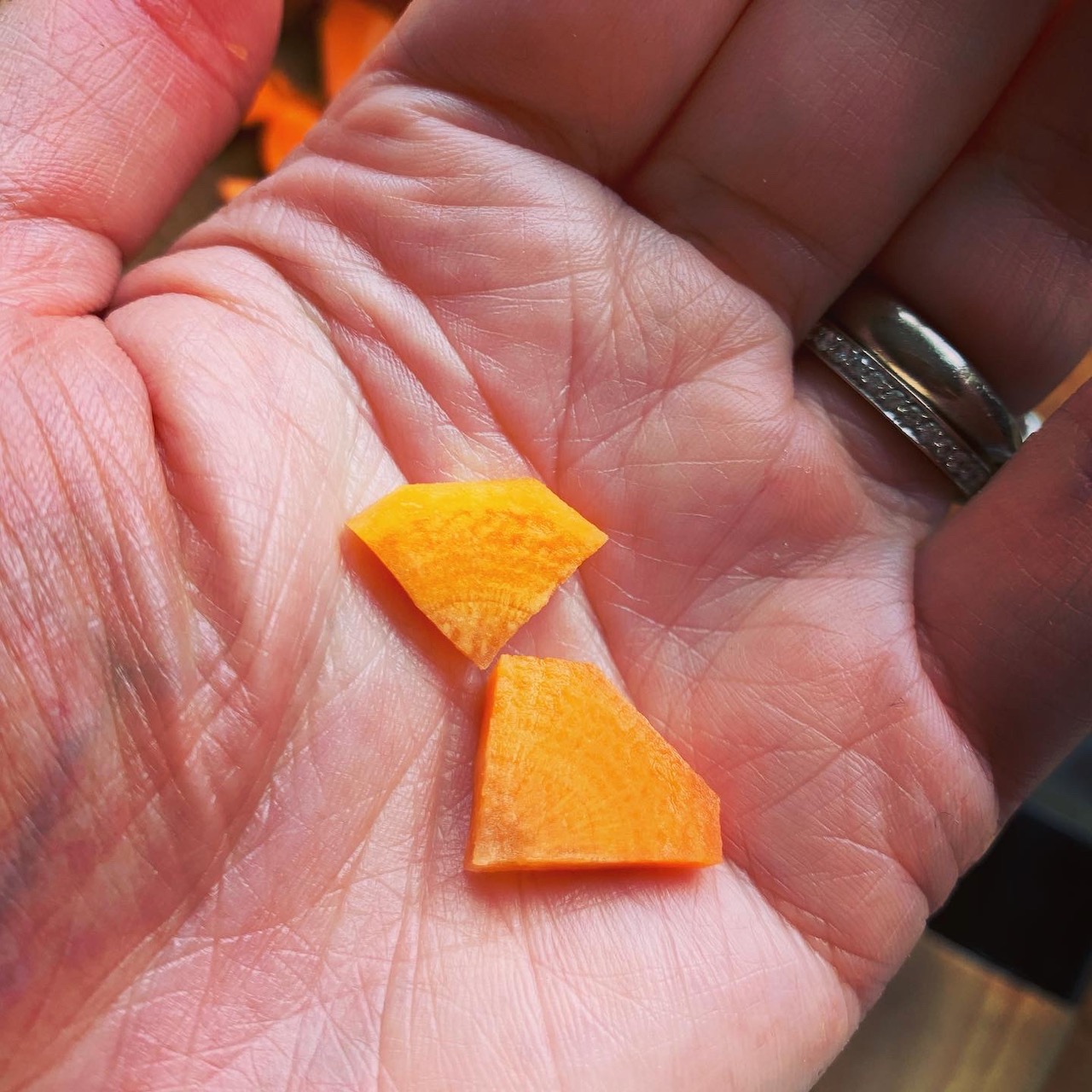 ‘C’est super mignon, ces petits éventails, non?’ – j’ai dit à mon mari alors que j’étais en train de couper des carottes à cuire. Je fais tout ça pour préparer le ‘sushi’ aux légumes (carottes-shiitake etc).