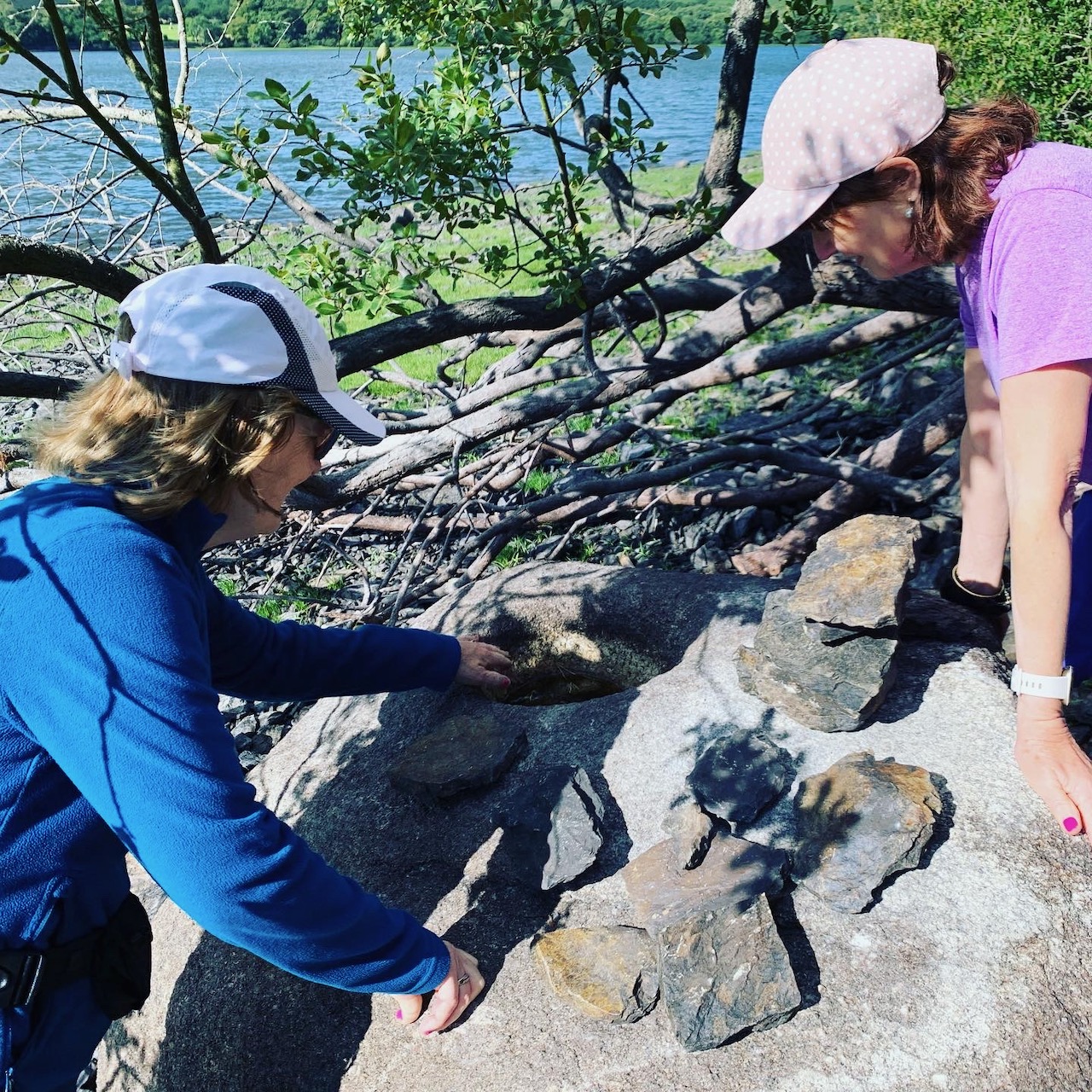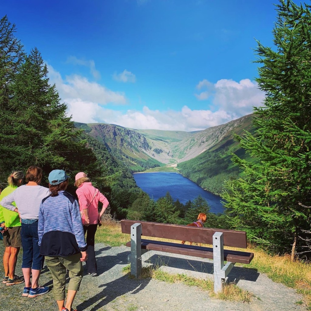 歩き始めは肌寒いほどの風のある朝。賑やかに歩くうちに身体が温まりました。聖ケヴィンの神様へのとりなしで母を失った赤ちゃんに毎日鹿が🦌乳をあげに来たという伝説で、お乳の容れ物になったという「丸い窪みのついた岩」が湖沿いに残されています。一説には金属を溶かすのに使ったものだとも言われています。