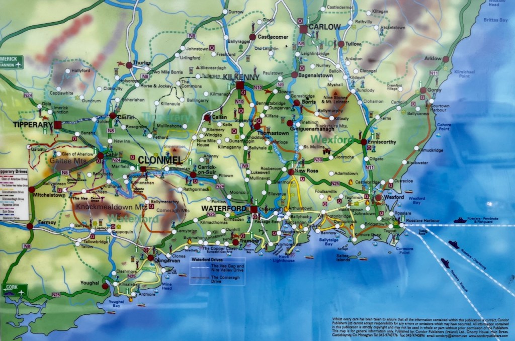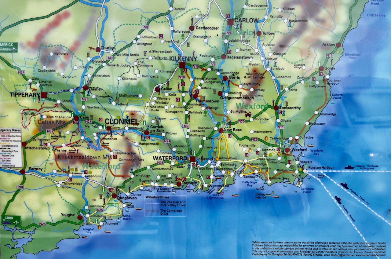 今回の川下りの目的地は、地図のなかほどにある Waterfordです。