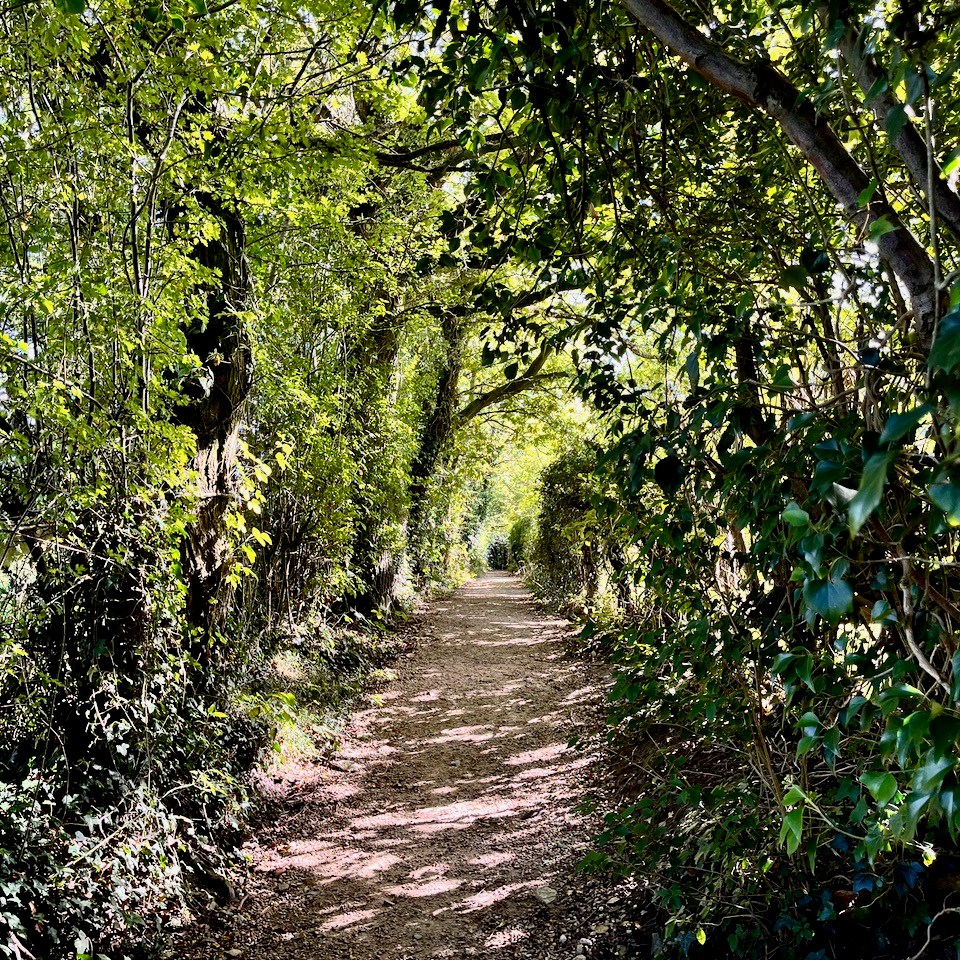 ナショナルトラストの領域を横切って、川沿いの道を通る気持ちの良いコース。