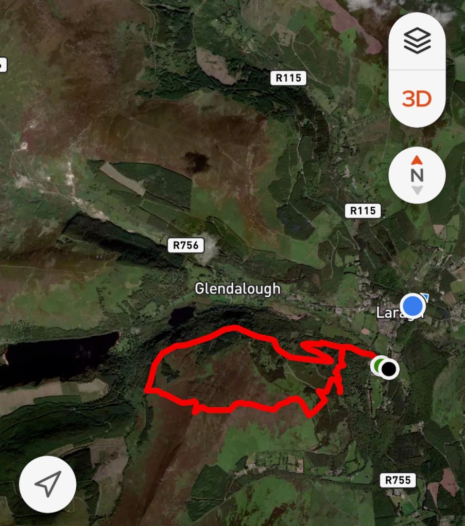 From Laragh car park up to Derrybawn Mountain top, 8.9 km elevation gain 448m.