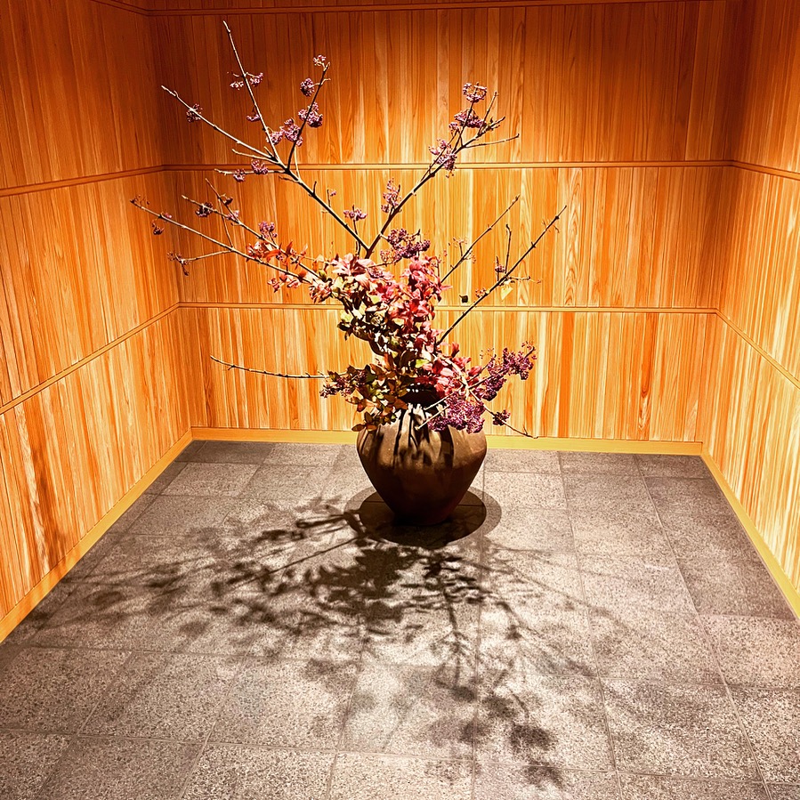 On peut stationner la voiture sur le côté à l’intérieur (très bien conçu!) et ensuite on monte au restaurant au 3ème étage : un bel espace très calme qui domine la verdure du Palais impérial d’Aoyama.