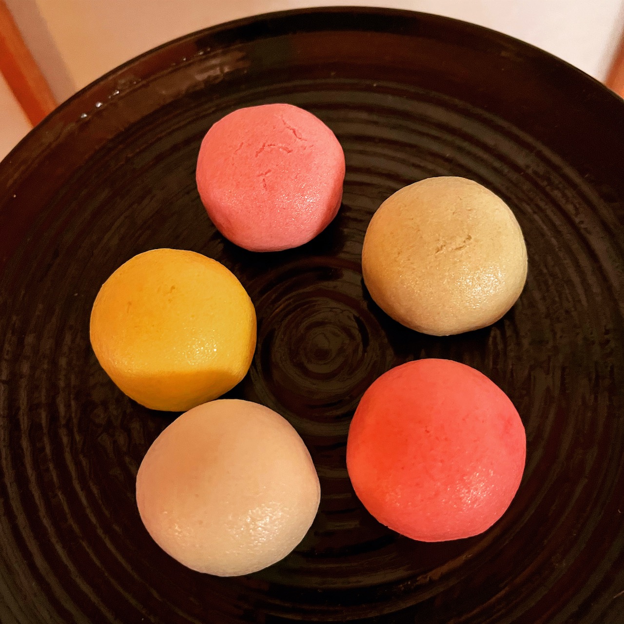 お土産は色とりどりの可愛らしい「七五三祝」の小さなお饅頭。